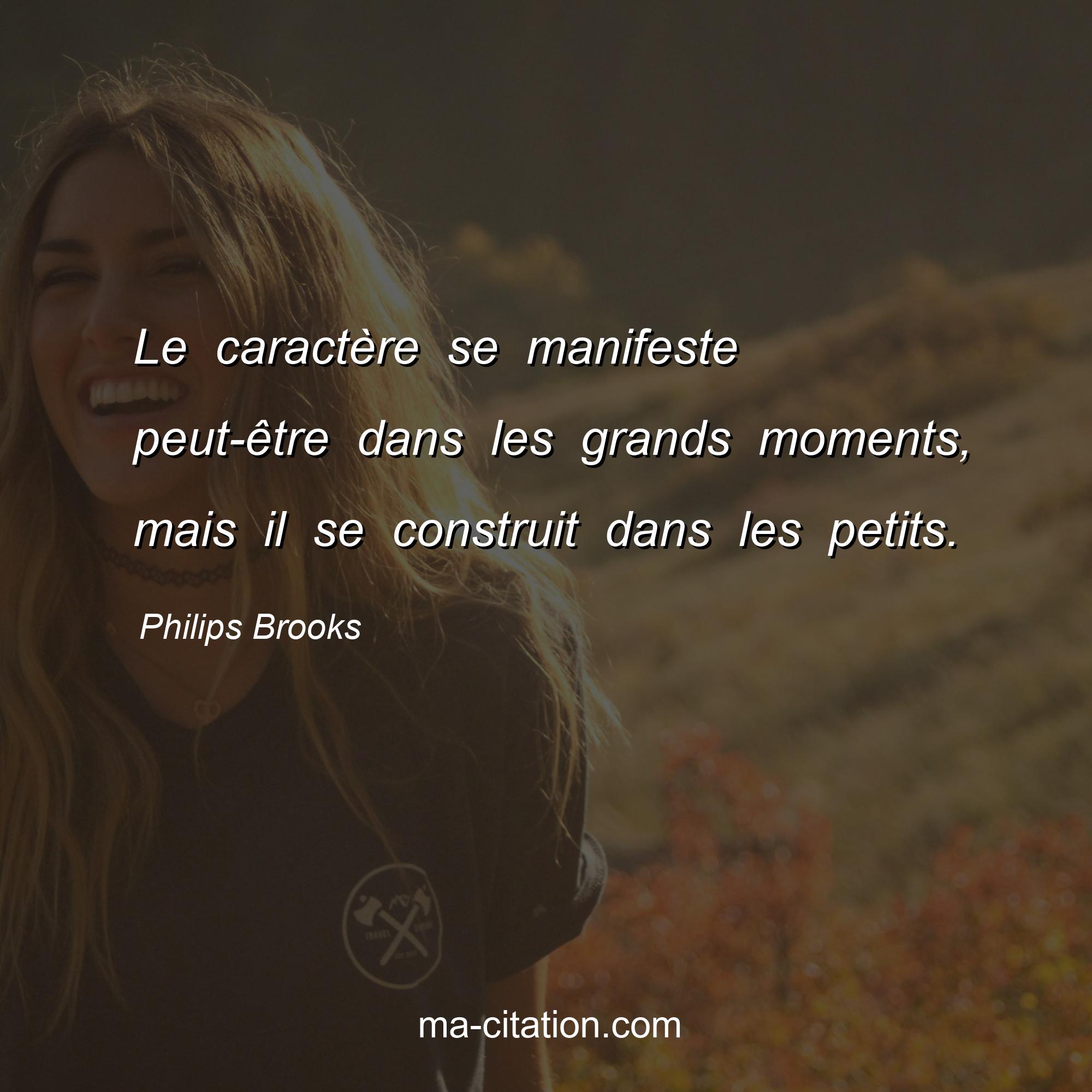 Citation sur la motivation de Philips Brooks :Le caractère se manifeste peut-être dans les grands moments, mais il se construit dans les petits.