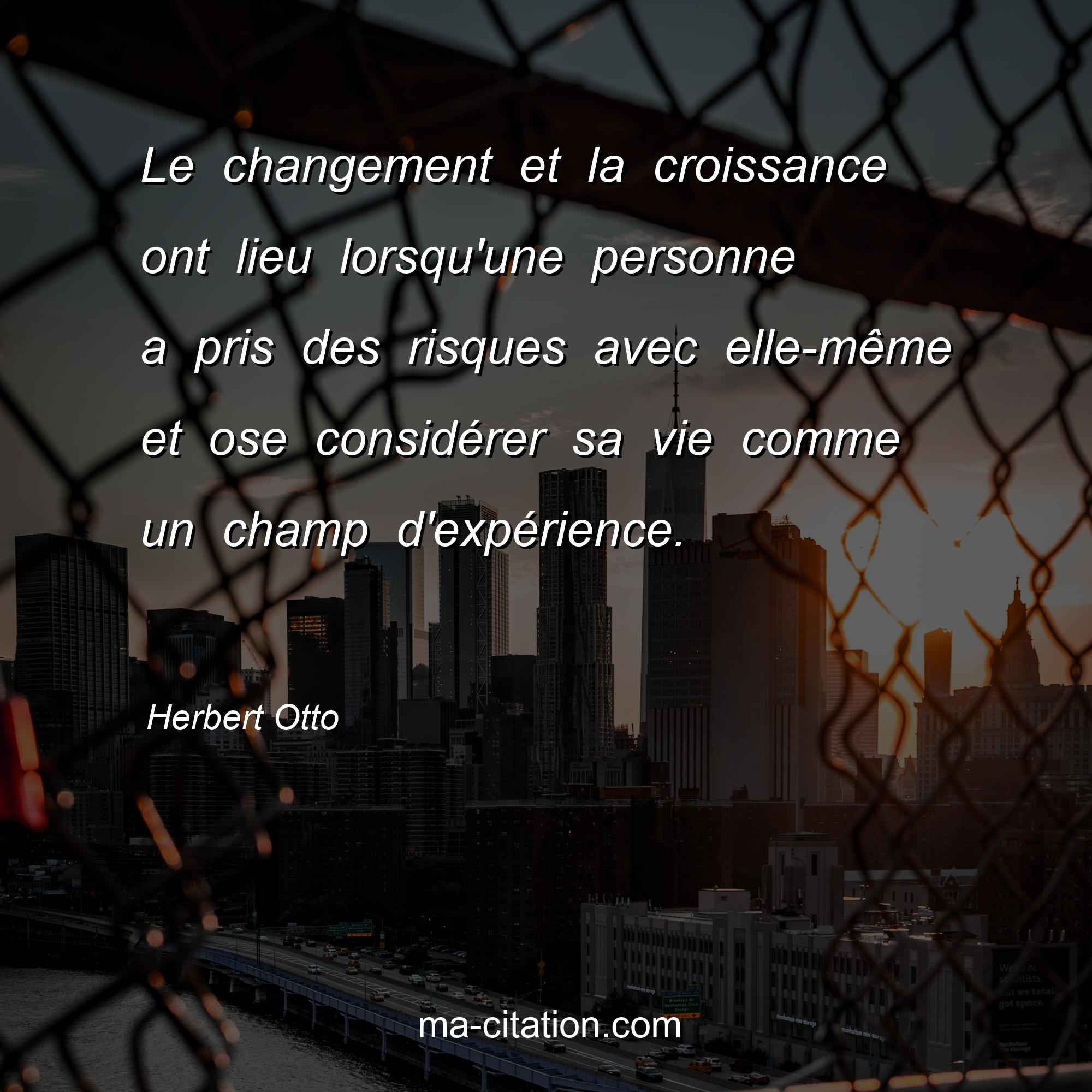 Citation sur la motivation de Herbert Otto :Le changement et la croissance ont lieu lorsqu'une personne a pris des risques avec elle-même et ose considérer sa vie comme un champ d'expérience.