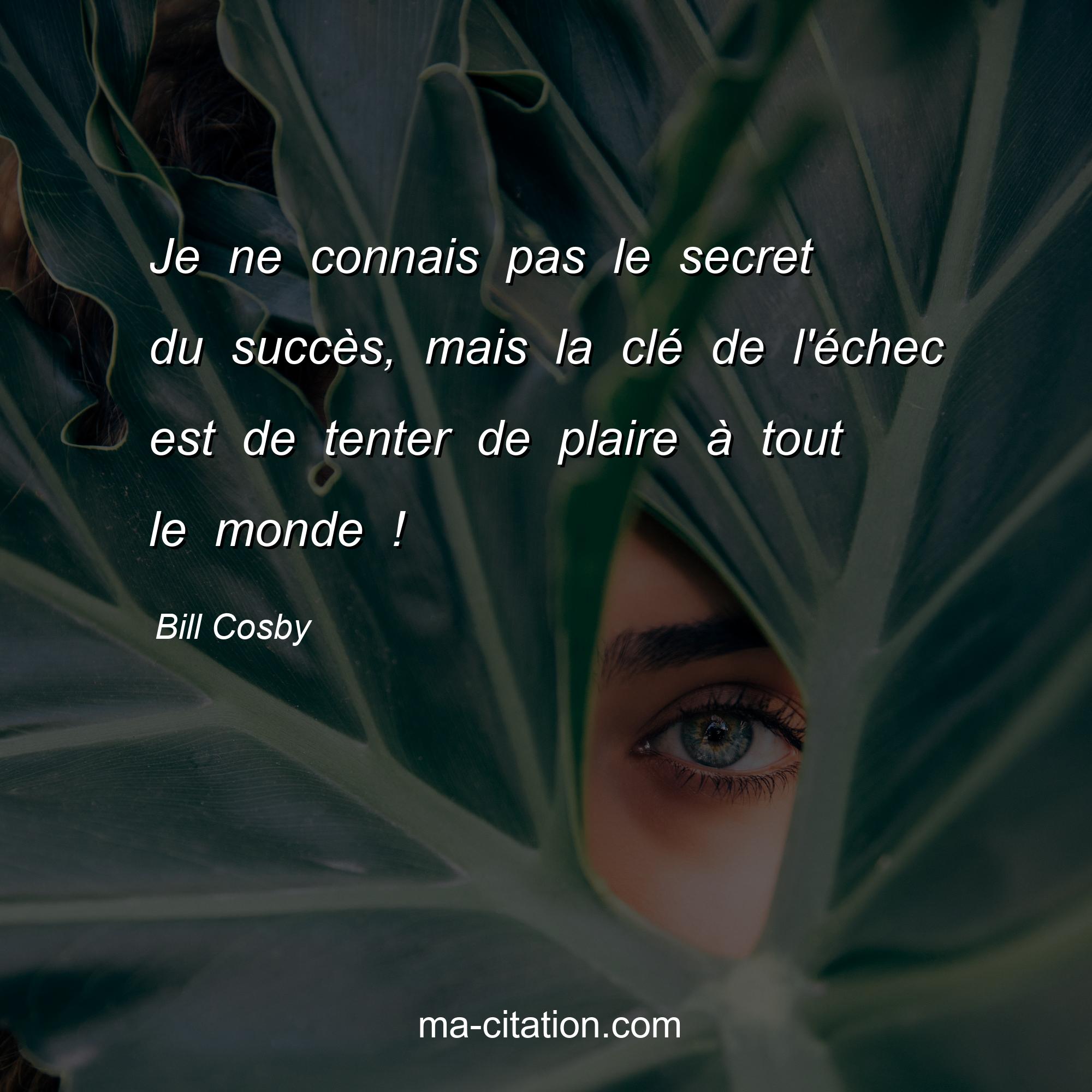 Citation sur la motivation de Bill Cosby :Je ne connais pas le secret du succès, mais la clé de l'échec est de tenter de plaire à tout le monde !