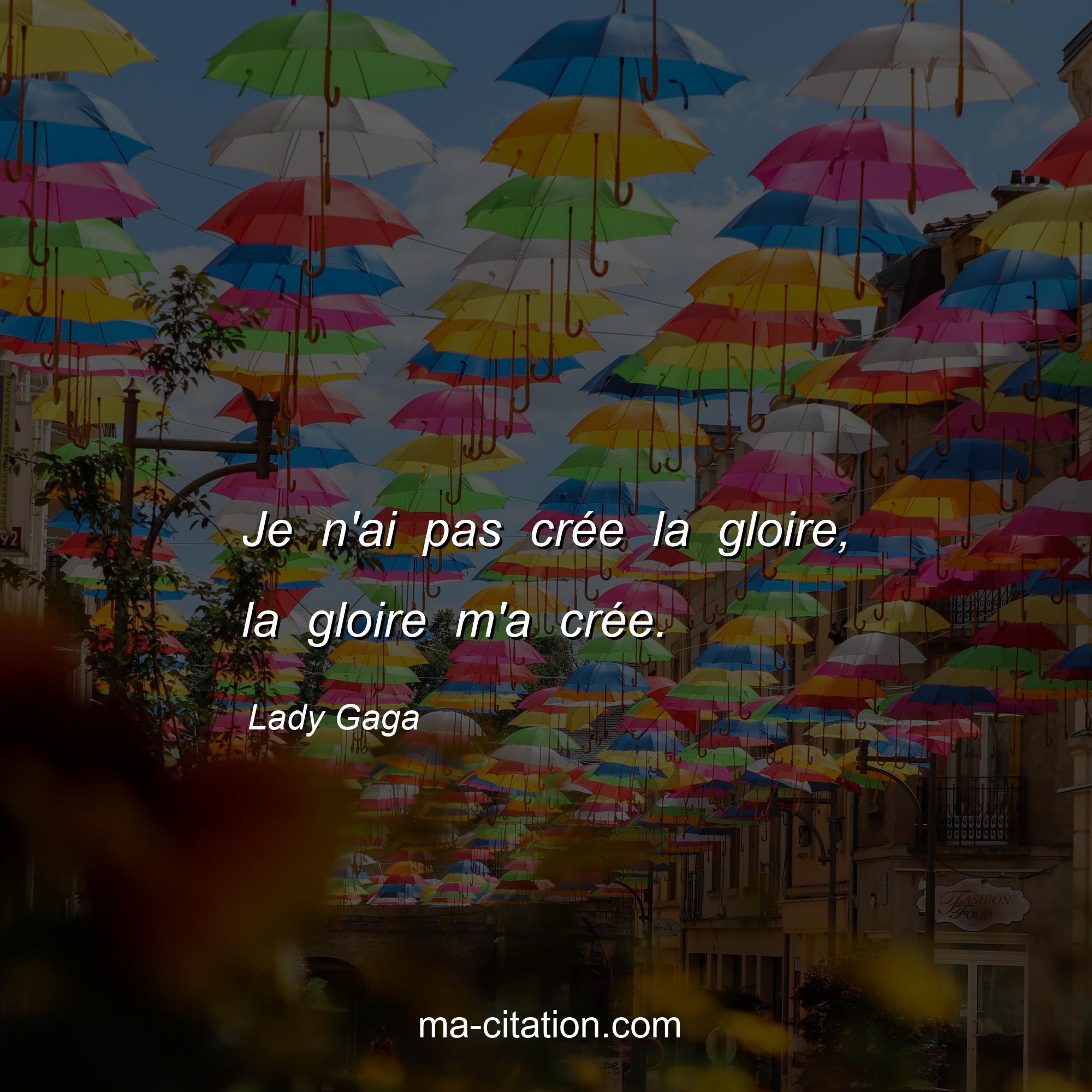 Lady Gaga est l'auteur de la citation sur la motivation "Je n'ai pas crée la gloire, la gloire m'a crée.".