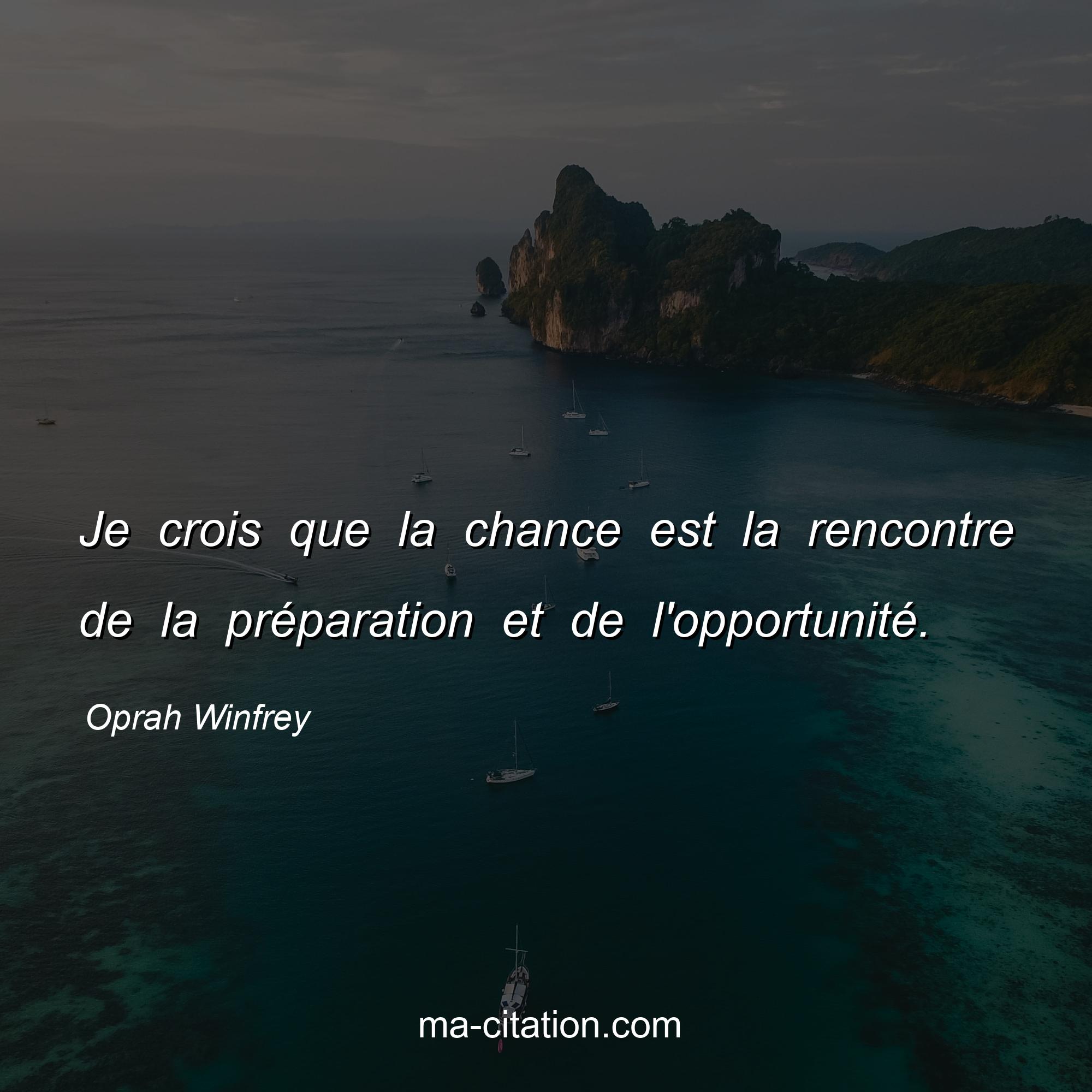 Citation sur la motivation d'Oprah Winfrey :Je crois que la chance est la rencontre de la préparation et de l'opportunité.