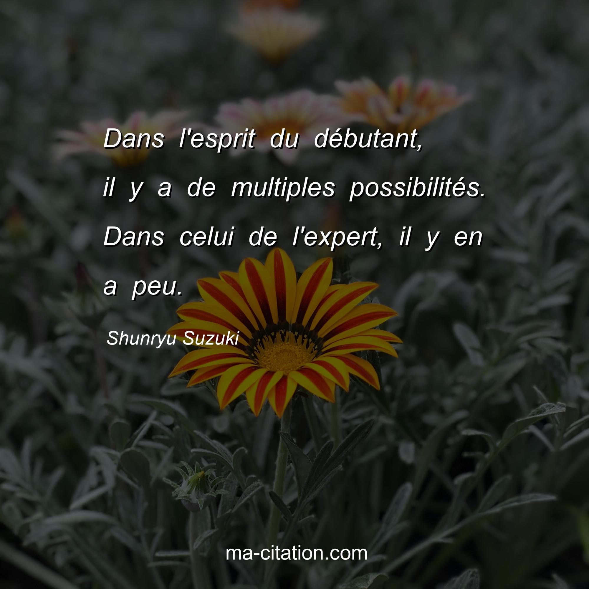 Shunryu Suzuki est l'auteur de la citation sur la motivation "Dans l'esprit du débutant, il y a de multiples possibilités. Dans celui de l'expert, il y en a peu.".