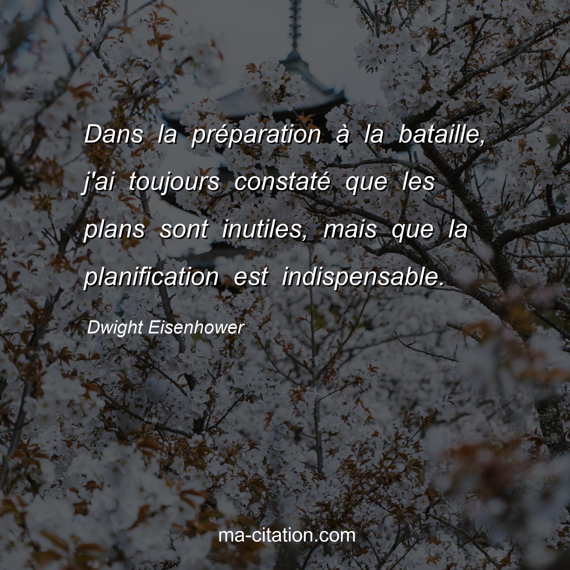 Citation sur la motivation de Dwight Eisenhower :Dans la préparation à la bataille, j'ai toujours constaté que les plans sont inutiles, mais que la planification est indispensable.