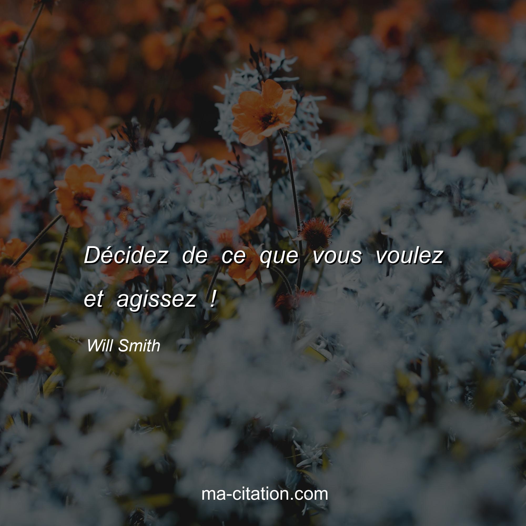 Citation sur la motivation de Will Smith :Décidez de ce que vous voulez et agissez !