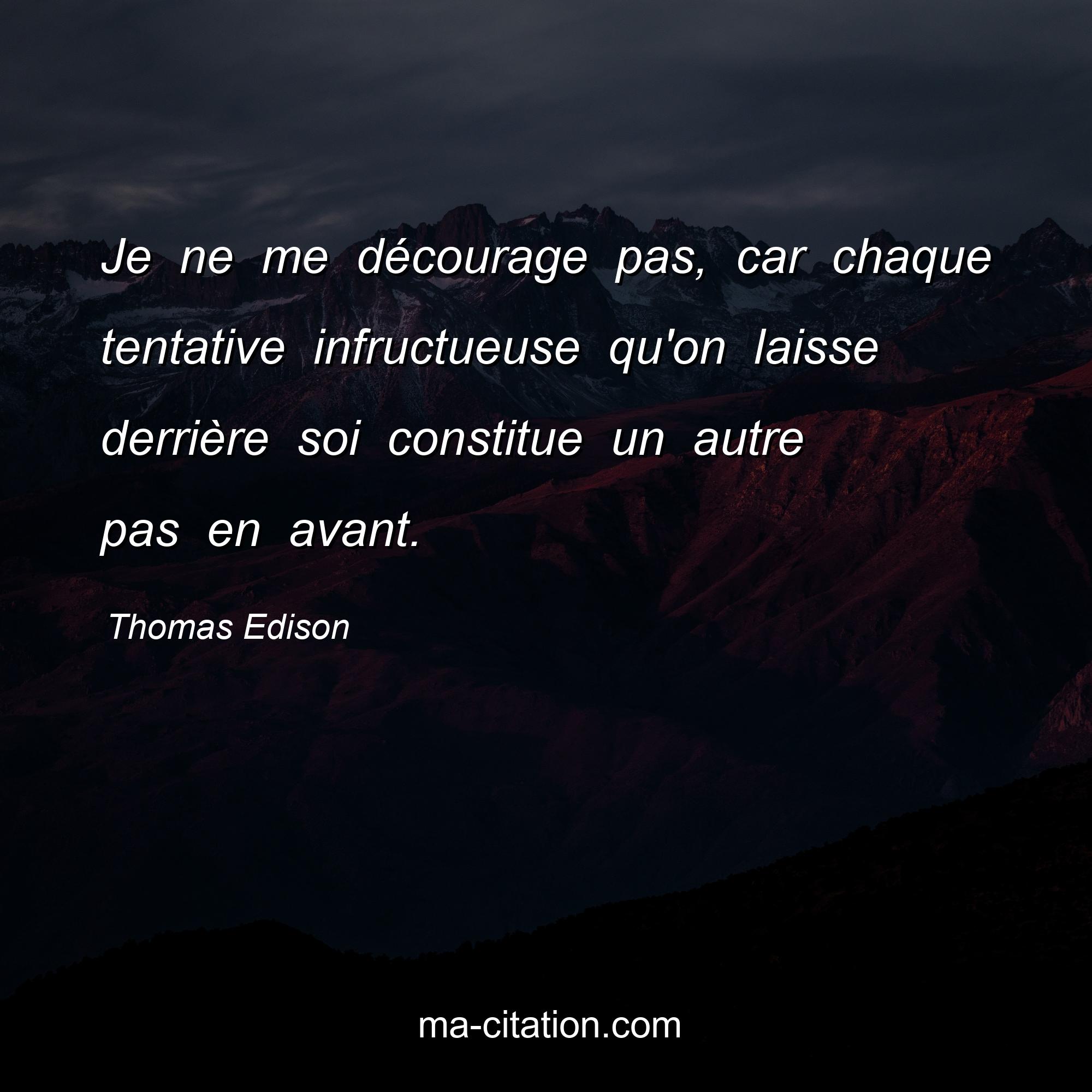 Citation sur la motivation de Thomas Edison :Je ne me décourage pas, car chaque tentative infructueuse qu'on laisse derrière soi constitue un autre pas en avant.