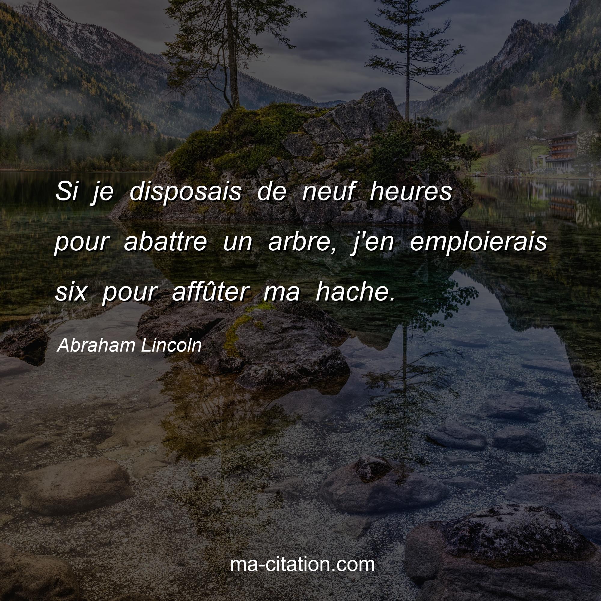 Citation sur la motivation d'Abraham Lincoln :Si je disposais de neuf heures pour abattre un arbre, j'en emploierais six pour affûter ma hache.