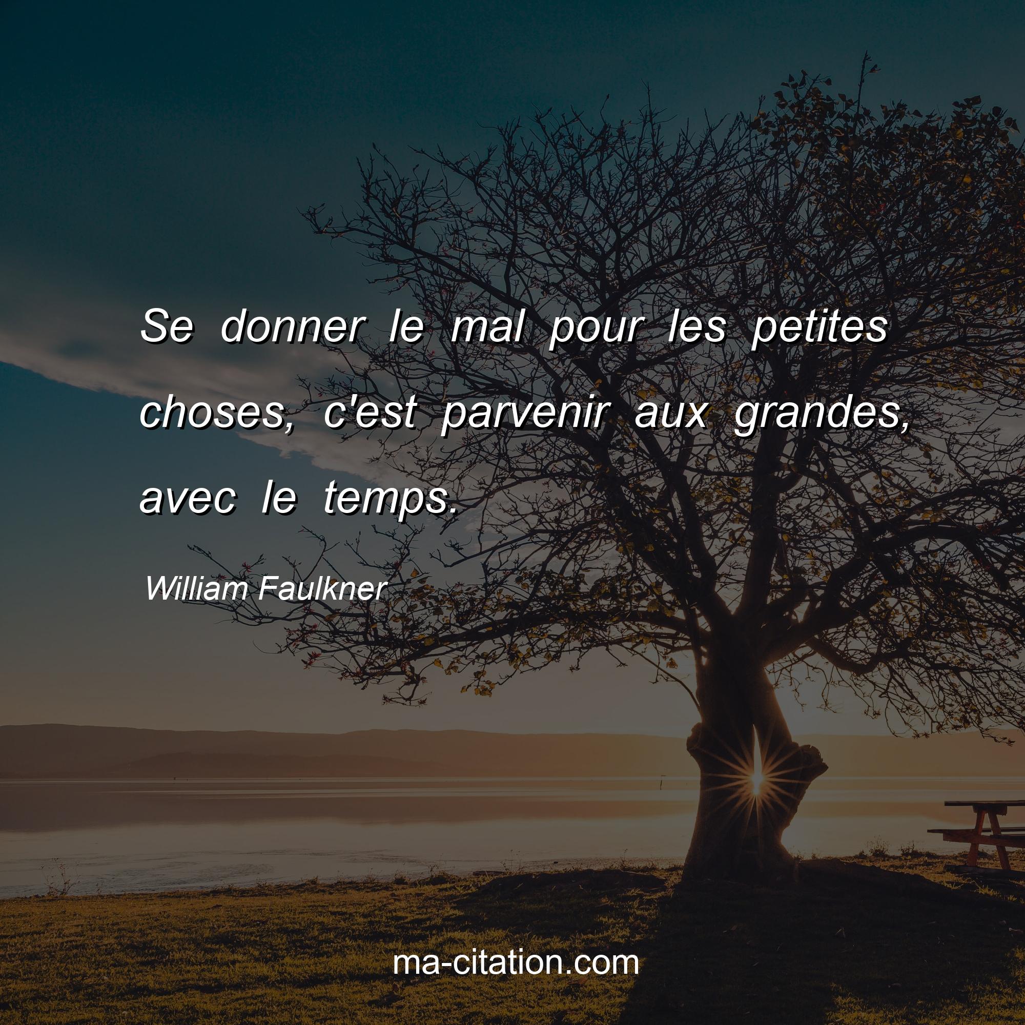 Citation sur la motivation de William Faulkner :Se donner le mal pour les petites choses, c'est parvenir aux grandes, avec le temps.