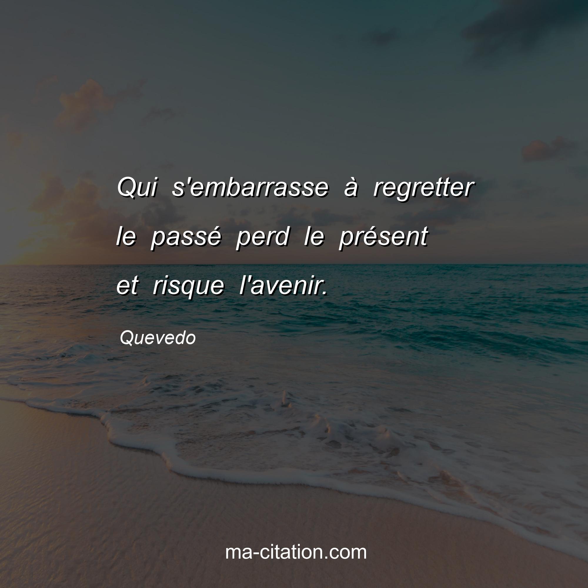 Citation sur la motivation de Quevedo :Qui s'embarrasse à regretter le passé perd le présent et risque l'avenir.