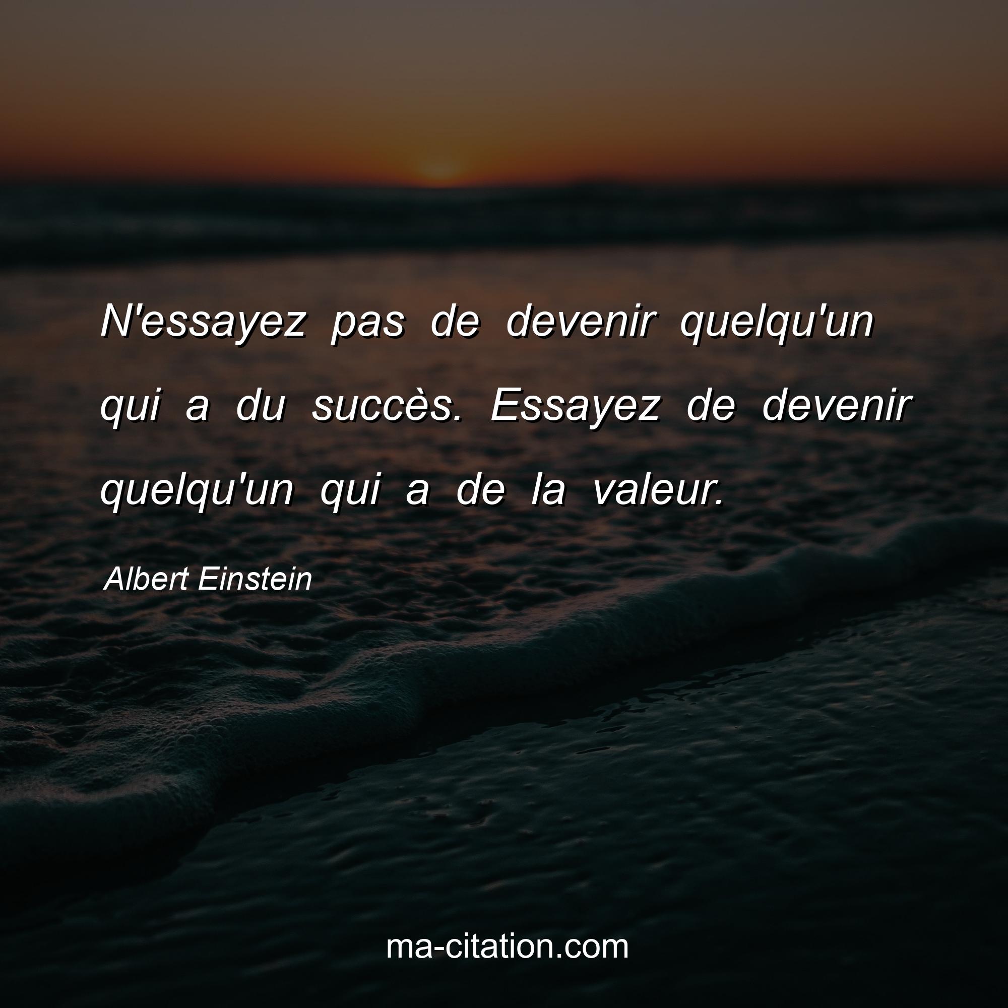 Citation sur la motivation d'Albert Einstein :N'essayez pas de devenir quelqu'un qui a du succès. Essayez de devenir quelqu'un qui a de la valeur.