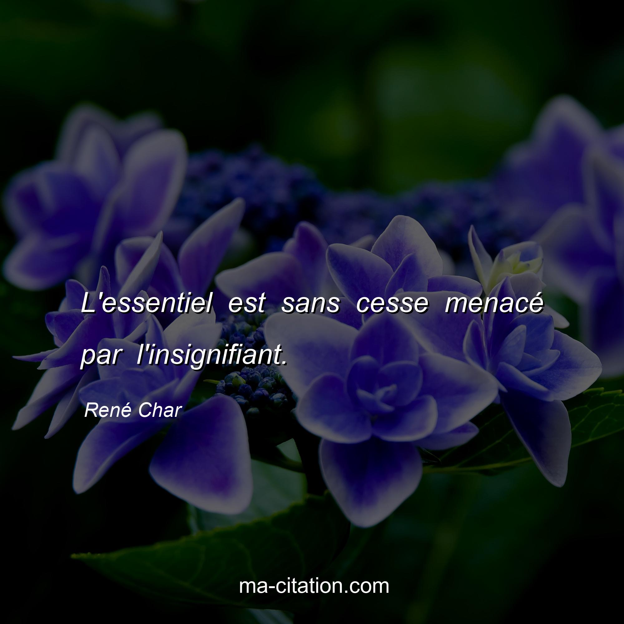 Citation sur la motivation de René Char :L'essentiel est sans cesse menacé par l'insignifiant.