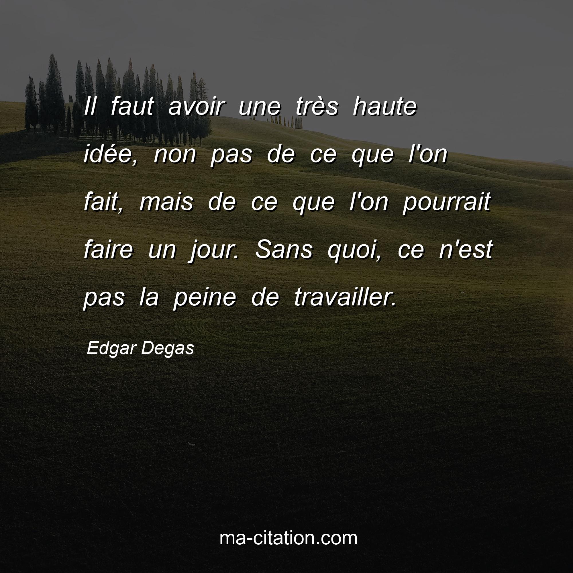 Citation sur la motivation d'Edgar Degas :Il faut avoir une très haute idée, non pas de ce que l'on fait, mais de ce que l'on pourrait faire un jour. Sans quoi, ce n'est pas la peine de travailler.