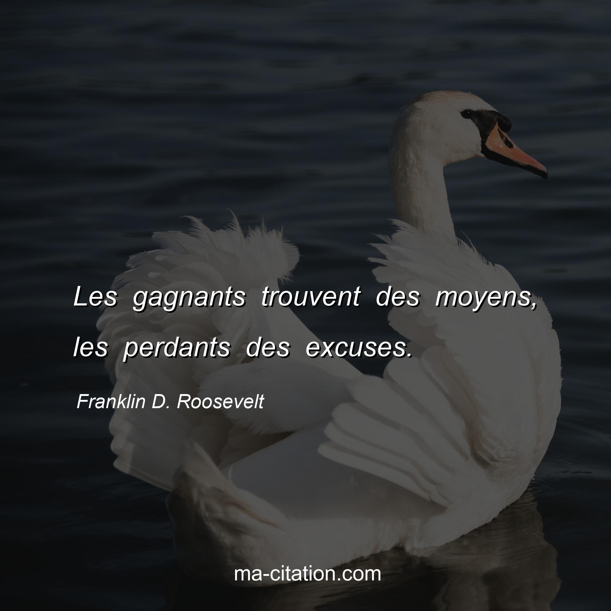Franklin D. Roosevelt est l'auteur de la citation sur la motivation "Les gagnants trouvent des moyens, les perdants des excuses.".