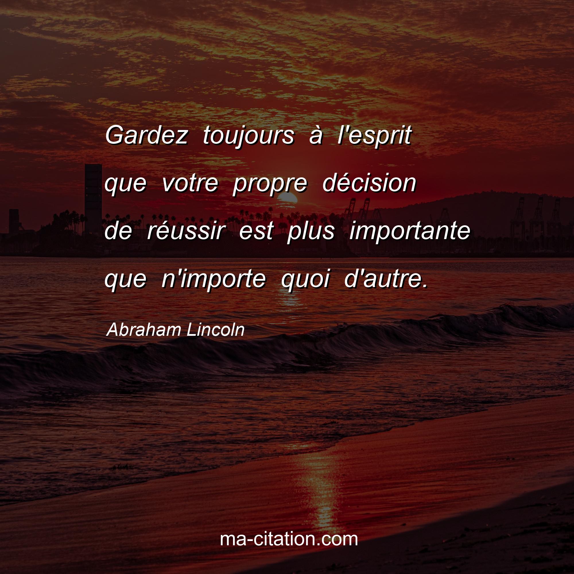 Citation sur la motivation d'Abraham Lincoln :Gardez toujours à l'esprit que votre propre décision de réussir est plus importante que n'importe quoi d'autre.