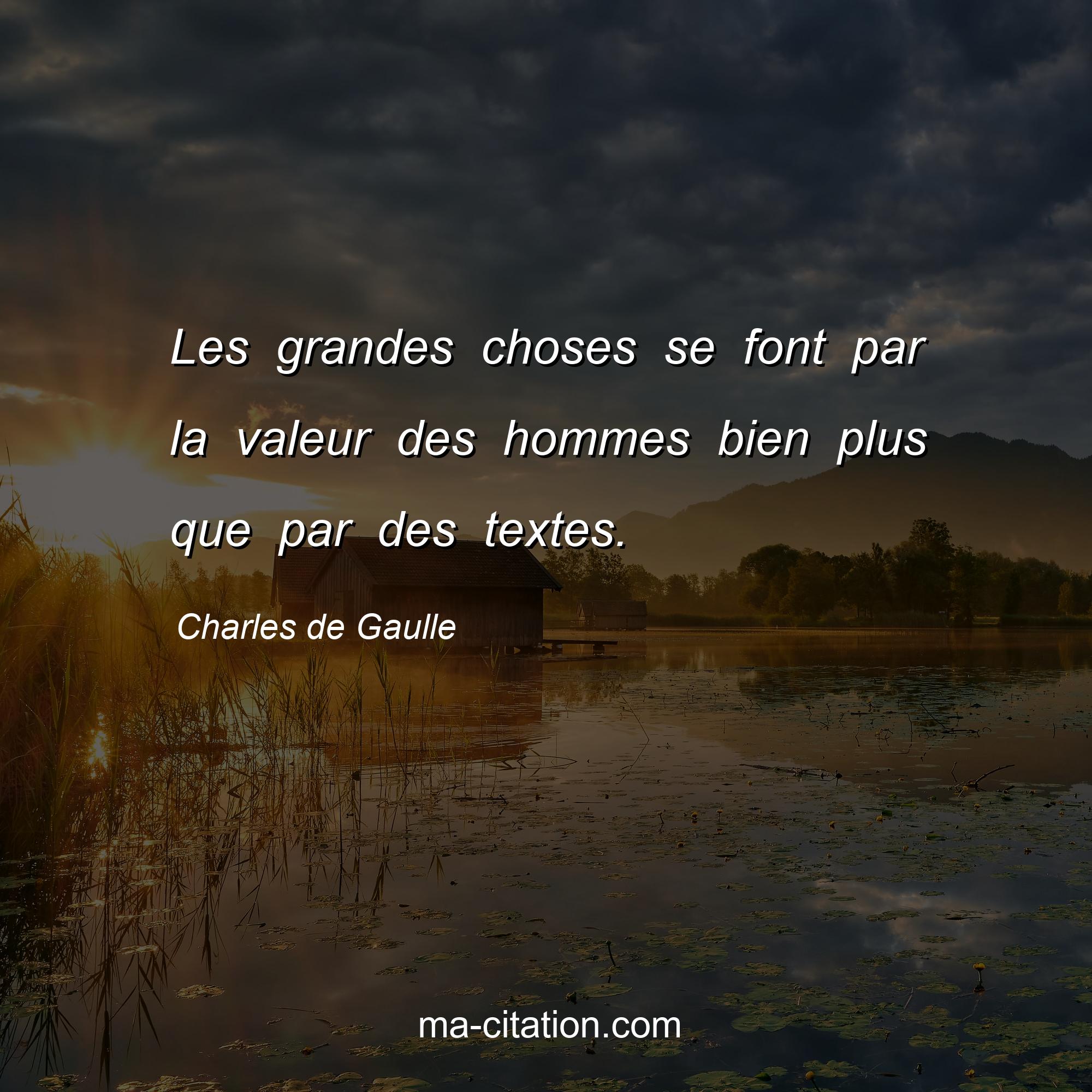 Citation sur la motivation de Charles de Gaulle :Les grandes choses se font par la valeur des hommes bien plus que par des textes.