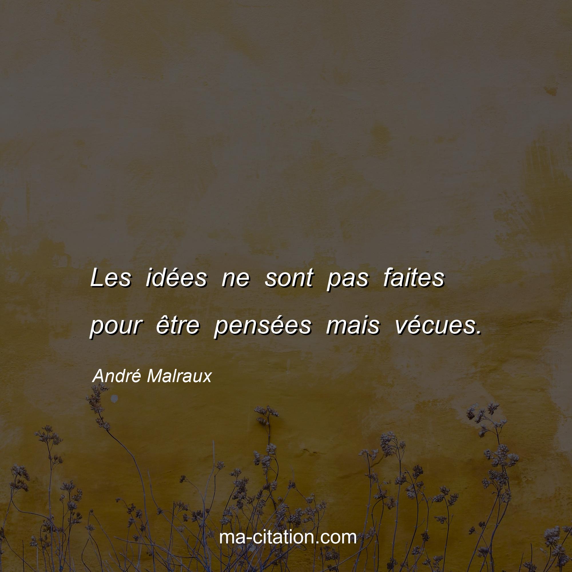 Citation sur la motivation d'André Malraux :Les idées ne sont pas faites pour être pensées mais vécues.