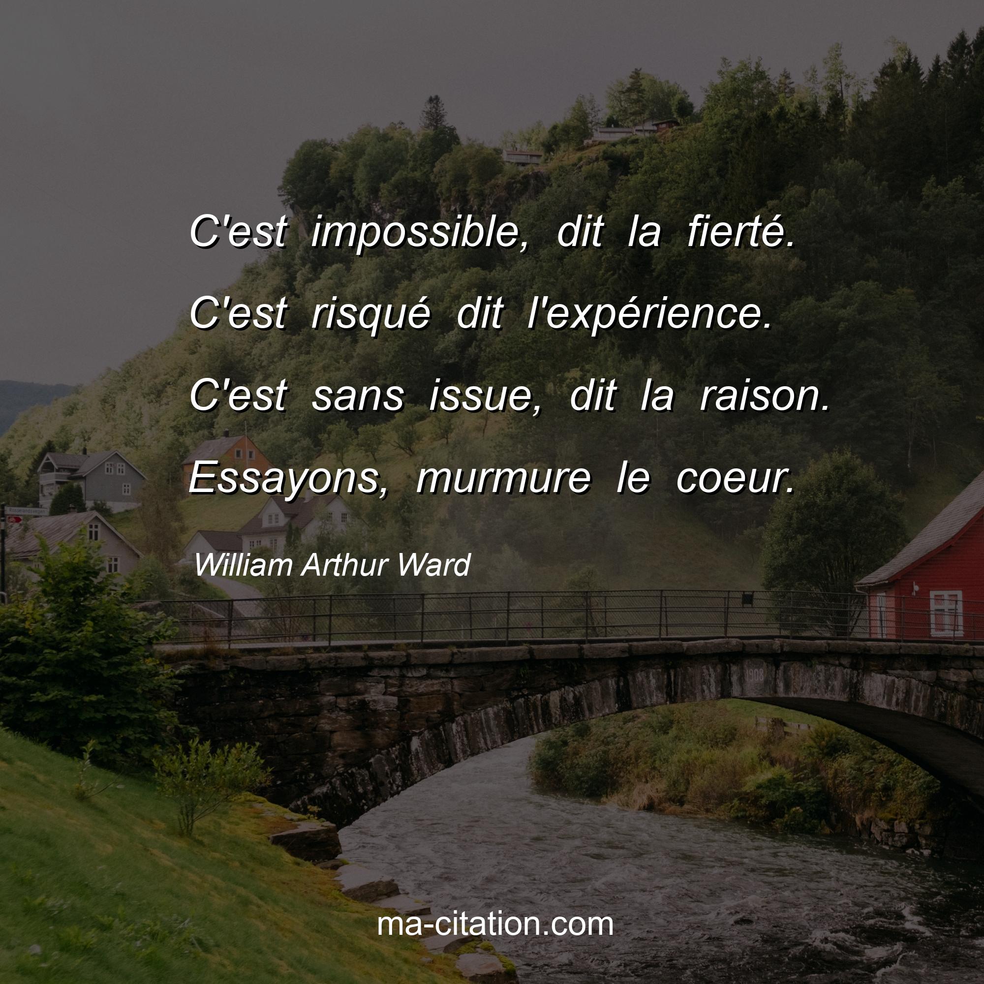 William Arthur Ward est l'auteur de la citation sur la motivation "C'est impossible, dit la fierté. C'est risqué dit l'expérience. C'est sans issue, dit la raison. Essayons, murmure le coeur.".