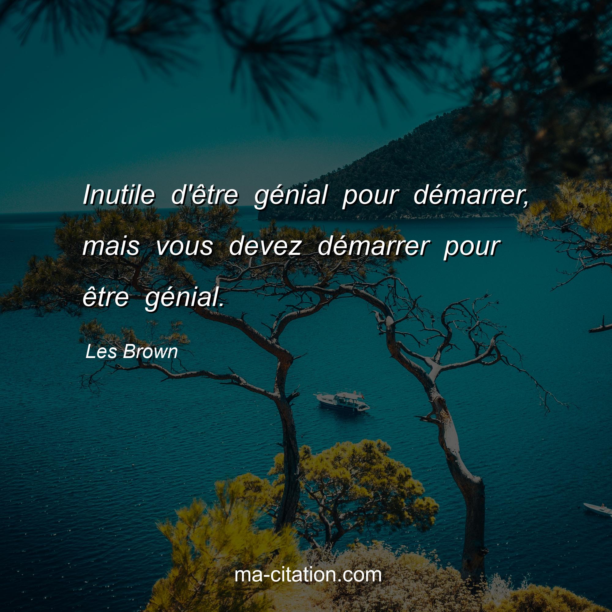 Citation sur la motivation de Les Brown :Inutile d'être génial pour démarrer, mais vous devez démarrer pour être génial.