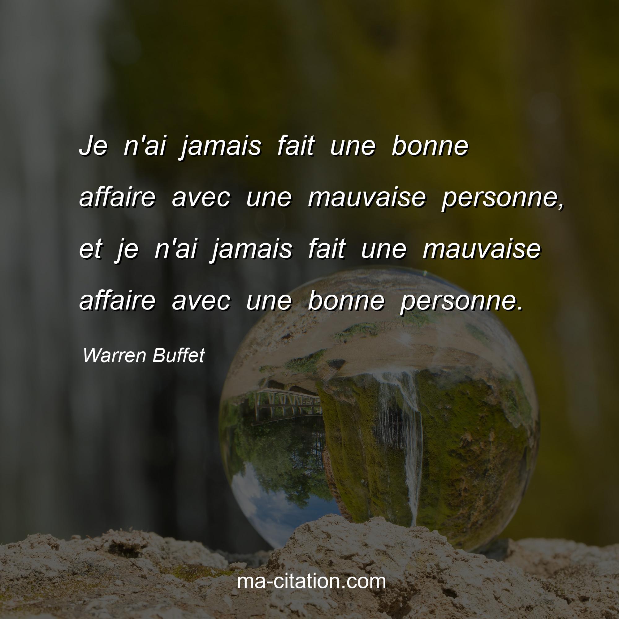 Warren Buffet est l'auteur de la citation sur la motivation "Je n'ai jamais fait une bonne affaire avec une mauvaise personne, et je n'ai jamais fait une mauvaise affaire avec une bonne personne.".