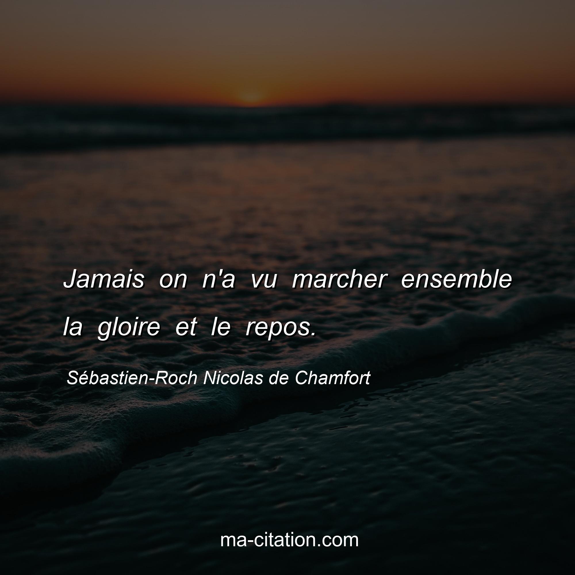 Citation sur la motivation de Sébastien-Roch Nicolas de Chamfort :Jamais on n'a vu marcher ensemble la gloire et le repos.