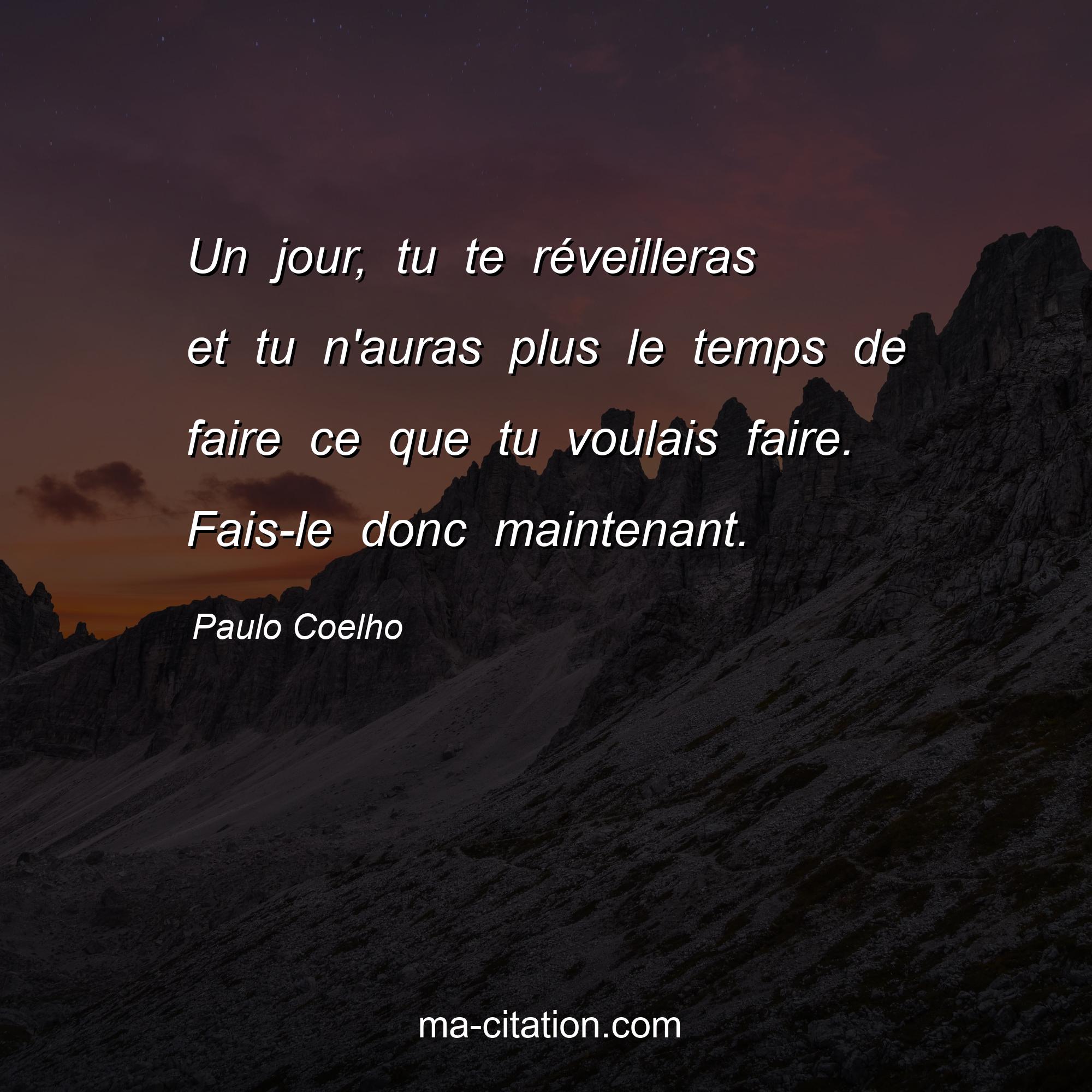 Citation sur la motivation de Paulo Coelho :Un jour, tu te réveilleras et tu n'auras plus le temps de faire ce que tu voulais faire. Fais-le donc maintenant.