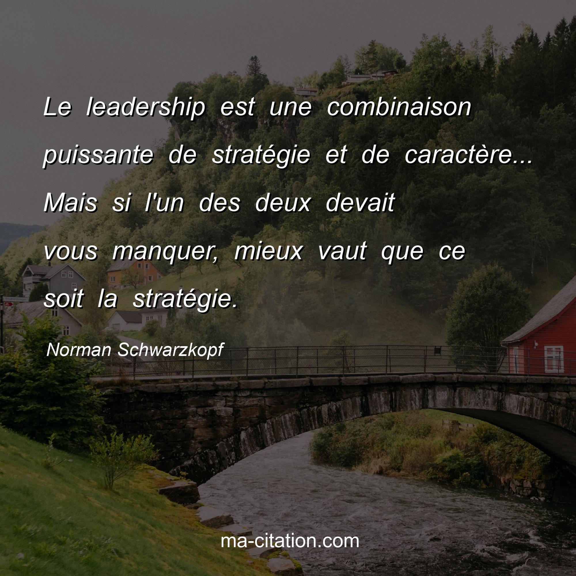 Citation sur la motivation de Norman Schwarzkopf :Le leadership est une combinaison puissante de stratégie et de caractère... Mais si l'un des deux devait vous manquer, mieux vaut que ce soit la stratégie.