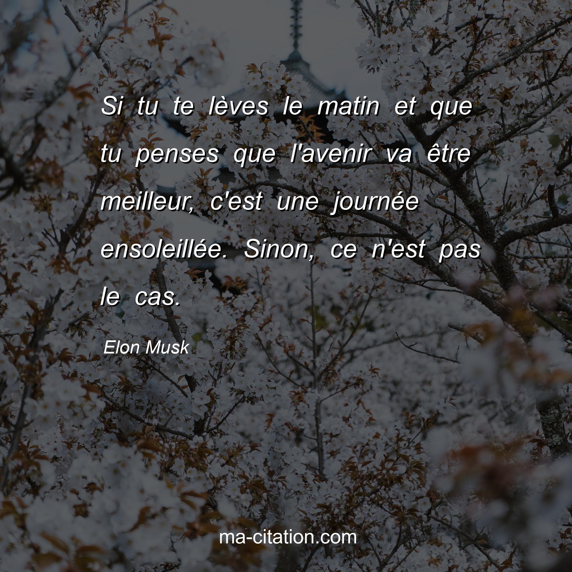 Citation sur la motivation d'Elon Musk :Si tu te lèves le matin et que tu penses que l'avenir va être meilleur, c'est une journée ensoleillée. Sinon, ce n'est pas le cas.