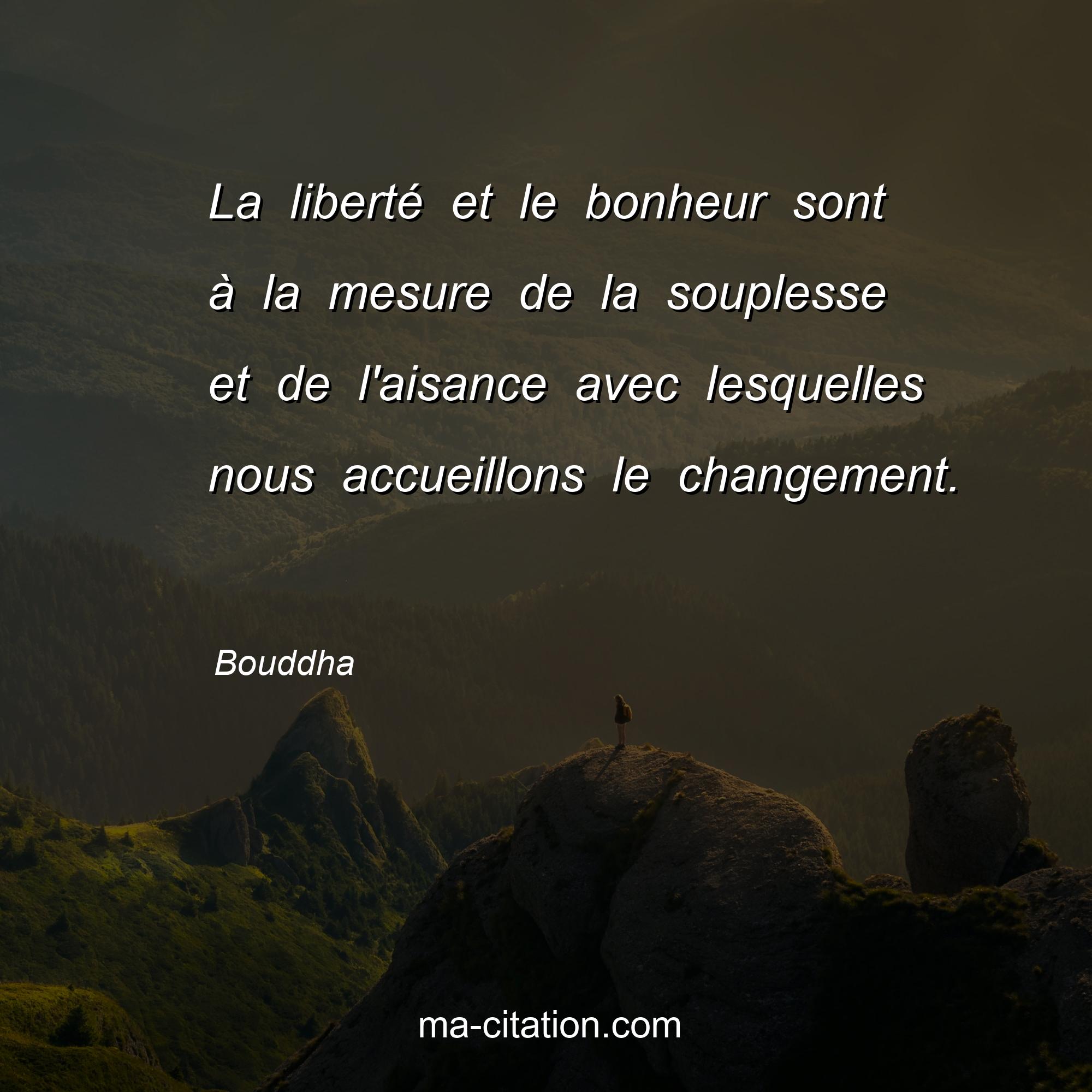 Bouddha est l'auteur de la citation sur la motivation "La liberté et le bonheur sont à la mesure de la souplesse et de l'aisance avec lesquelles nous accueillons le changement. ".