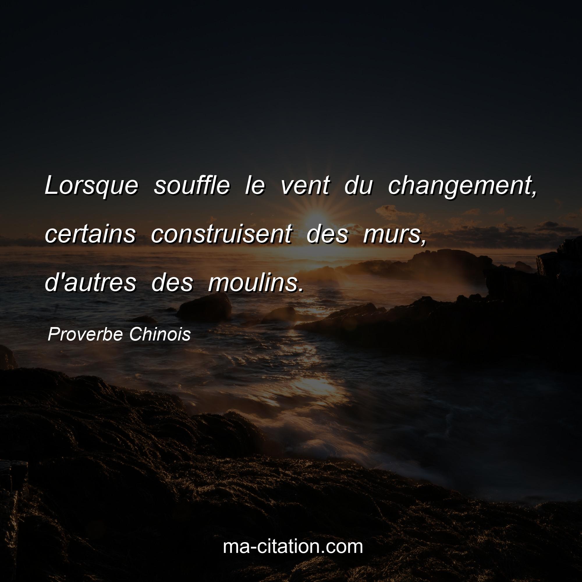 Proverbe Chinois sur la motivation :Lorsque souffle le vent du changement, certains construisent des murs, d'autres des moulins.