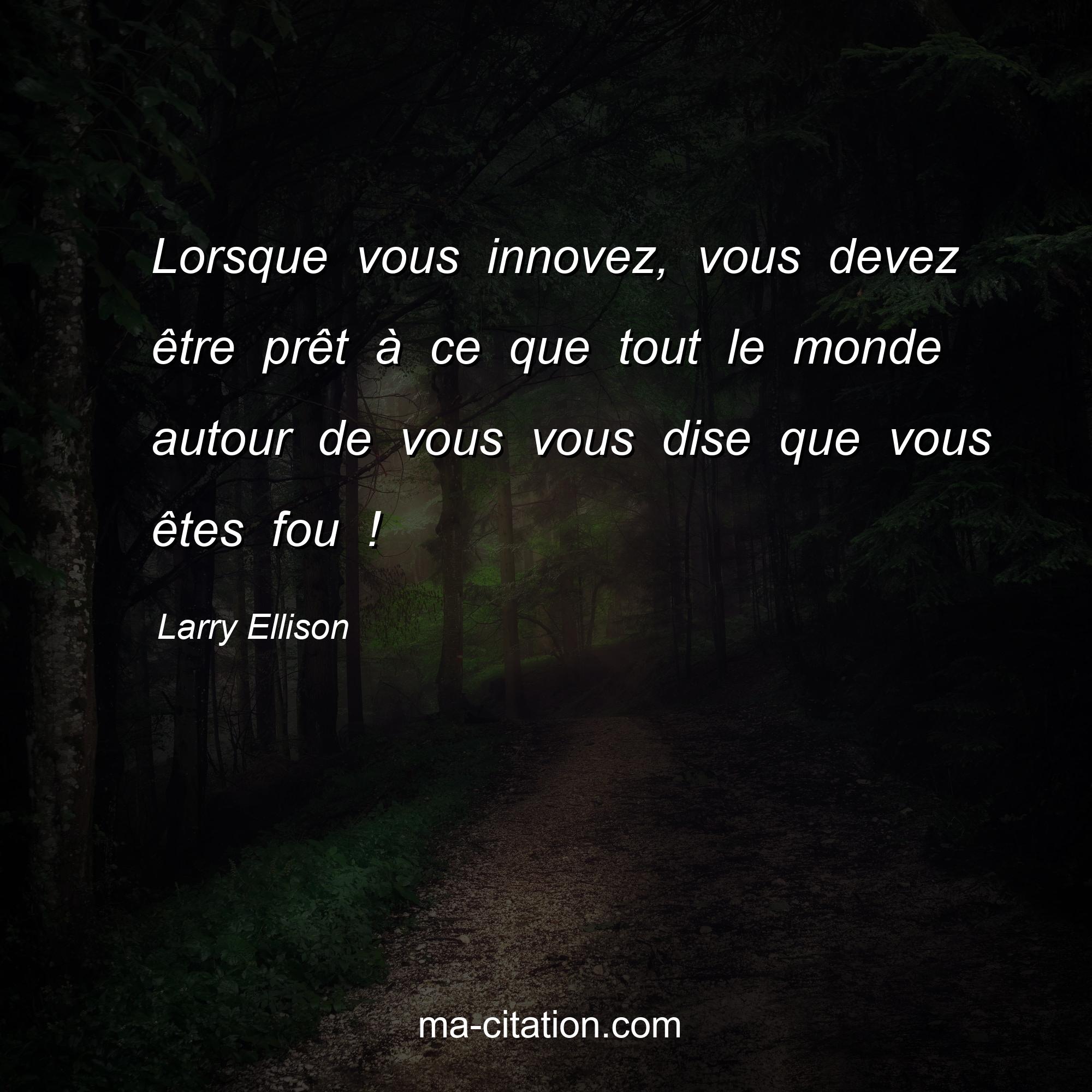 Citation sur la motivation de Larry Ellison :Lorsque vous innovez, vous devez être prêt à ce que tout le monde autour de vous vous dise que vous êtes fou !