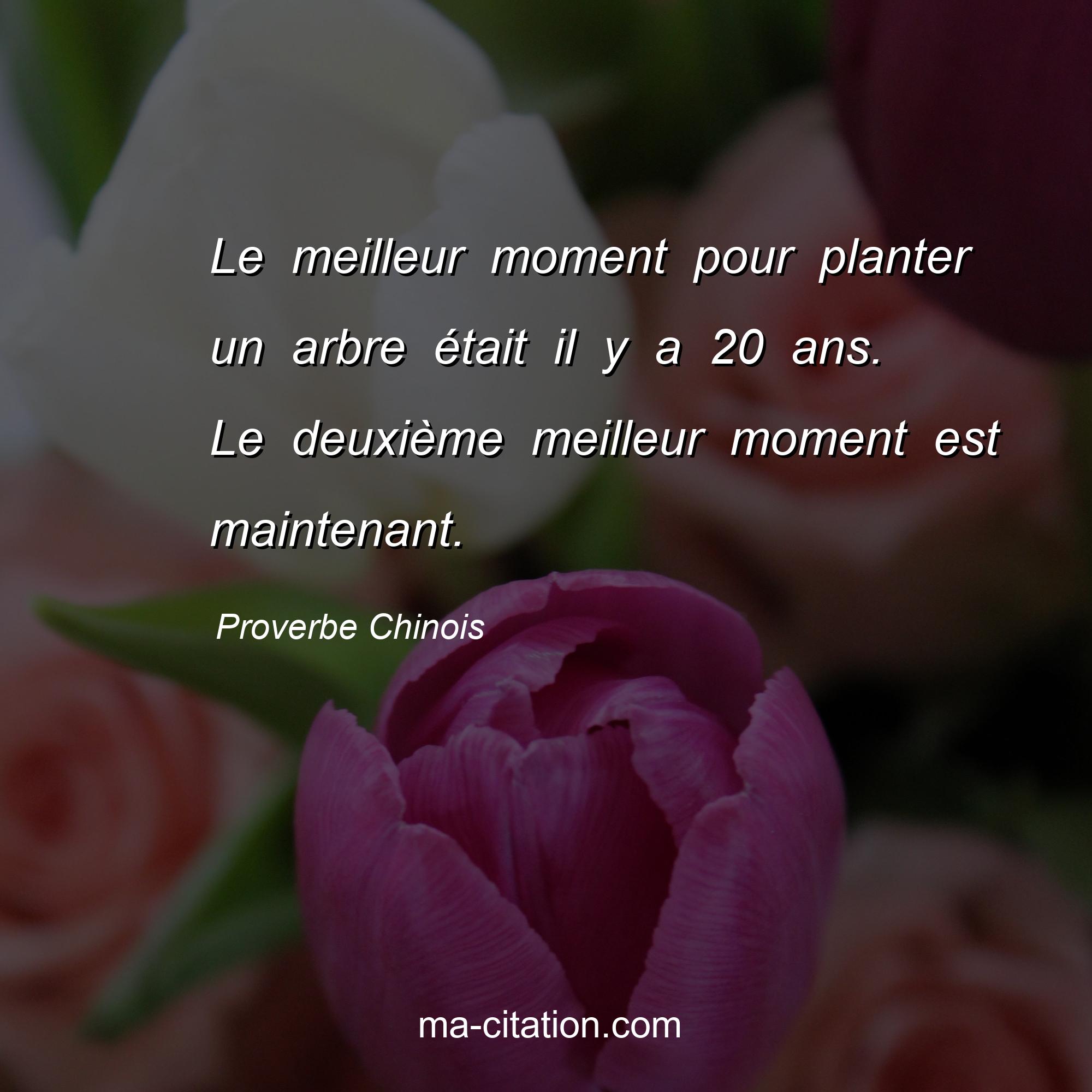 Proverbe Chinois sur la motivation :Le meilleur moment pour planter un arbre était il y a 20 ans. Le deuxième meilleur moment est maintenant.
