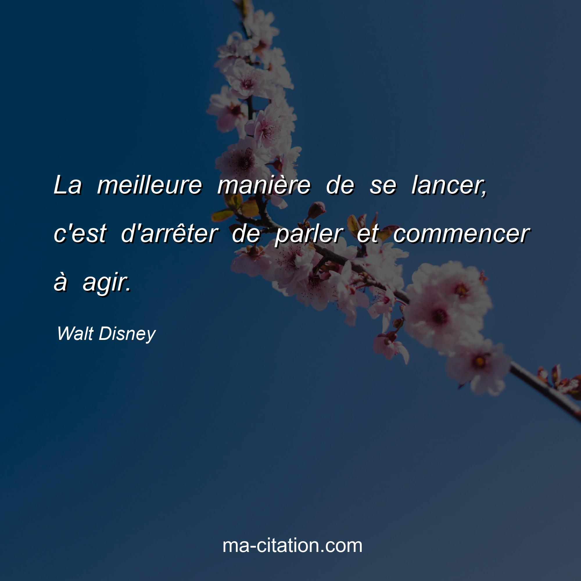 Walt Disney est l'auteur de la citation sur la motivation "La meilleure manière de se lancer, c'est d'arrêter de parler et commencer à agir.".
