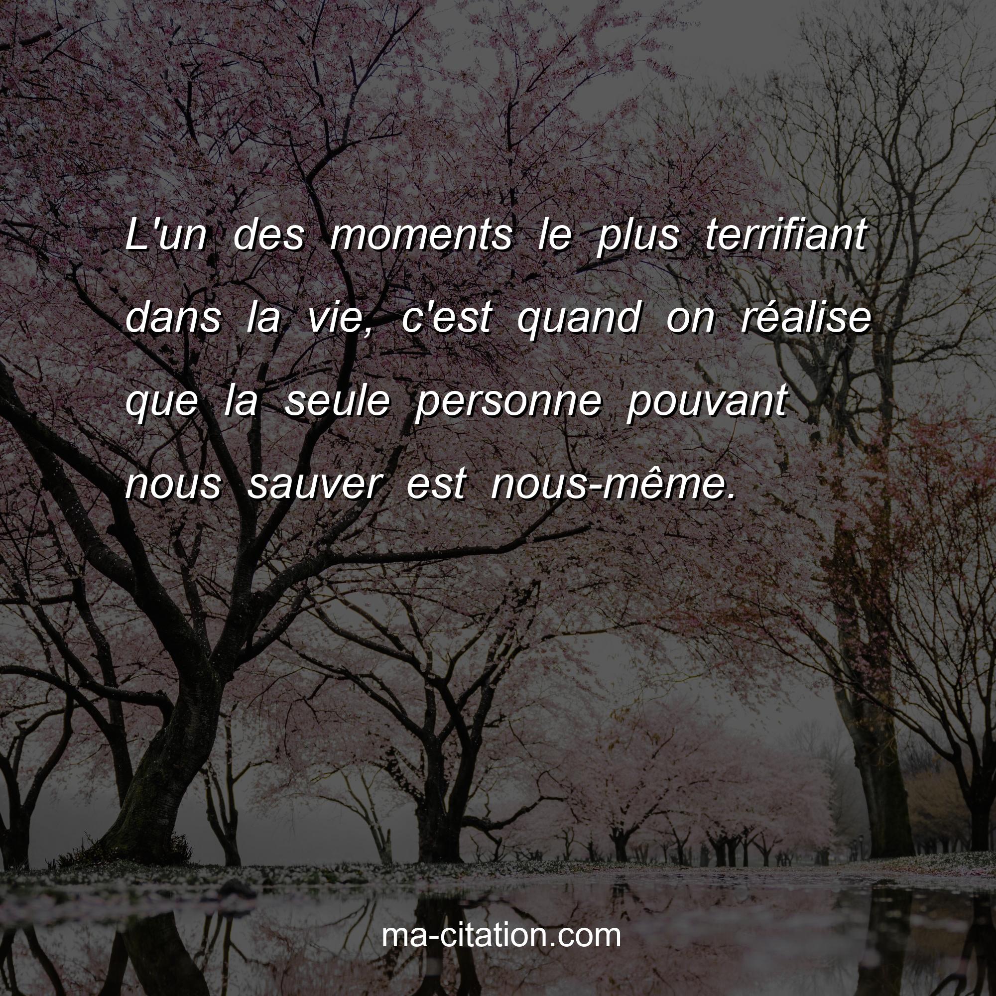 L'un des moments le plus terrifiant dans la vie, c'est quand on réalise que la seule personne pouvant nous sauver est nous-même.