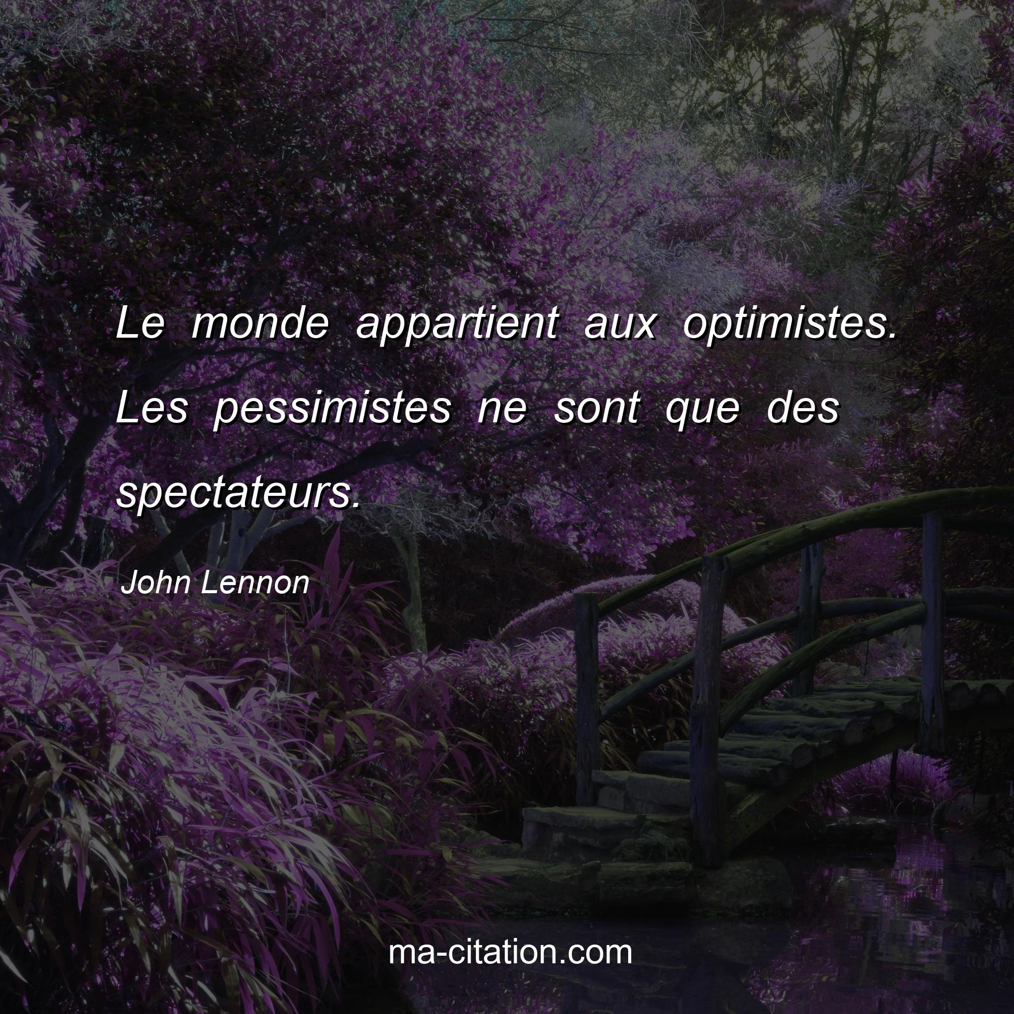 Citation sur la motivation de John Lennon :Le monde appartient aux optimistes. Les pessimistes ne sont que des spectateurs.