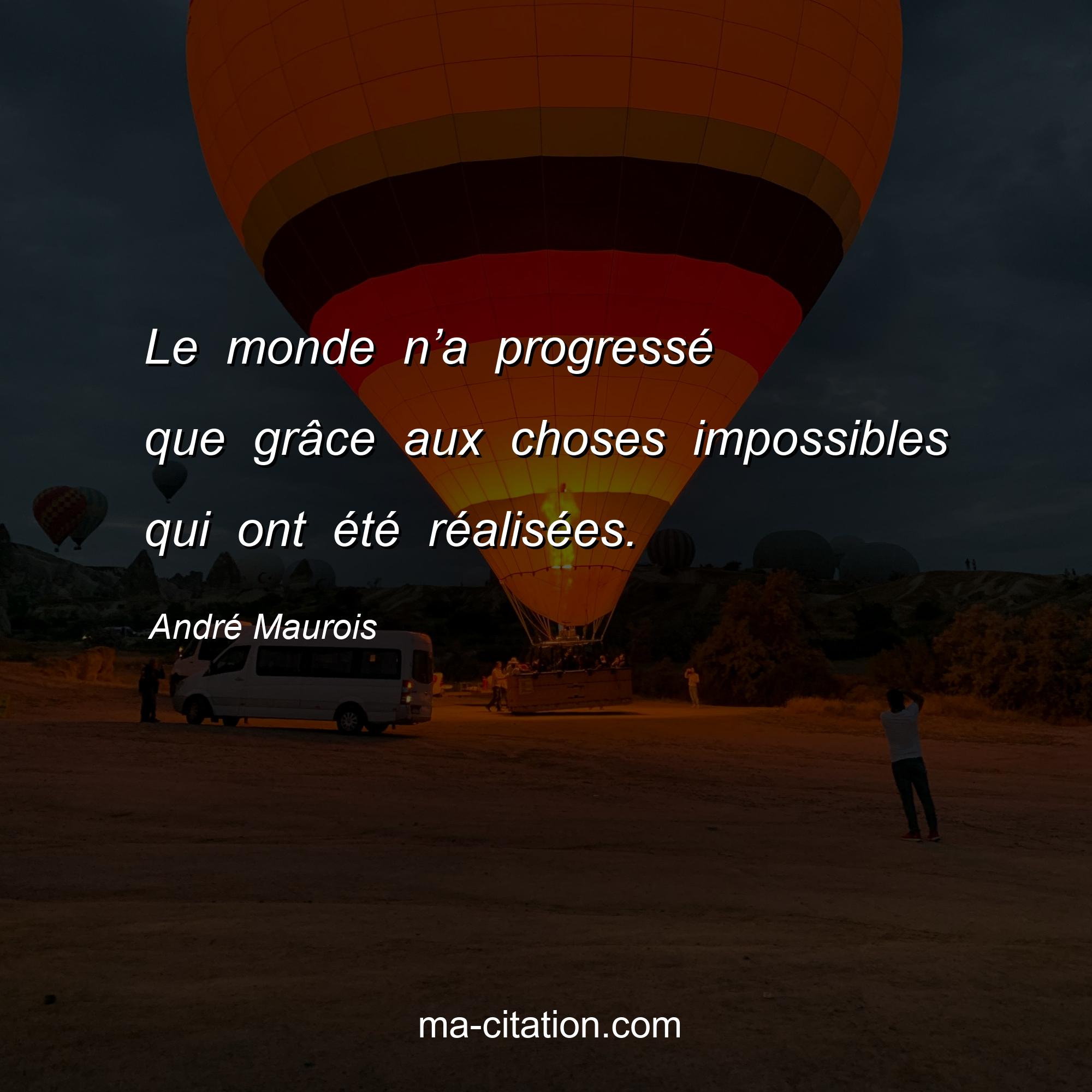 Citation sur la motivation d'André Maurois :Le monde n’a progressé que grâce aux choses impossibles qui ont été réalisées.