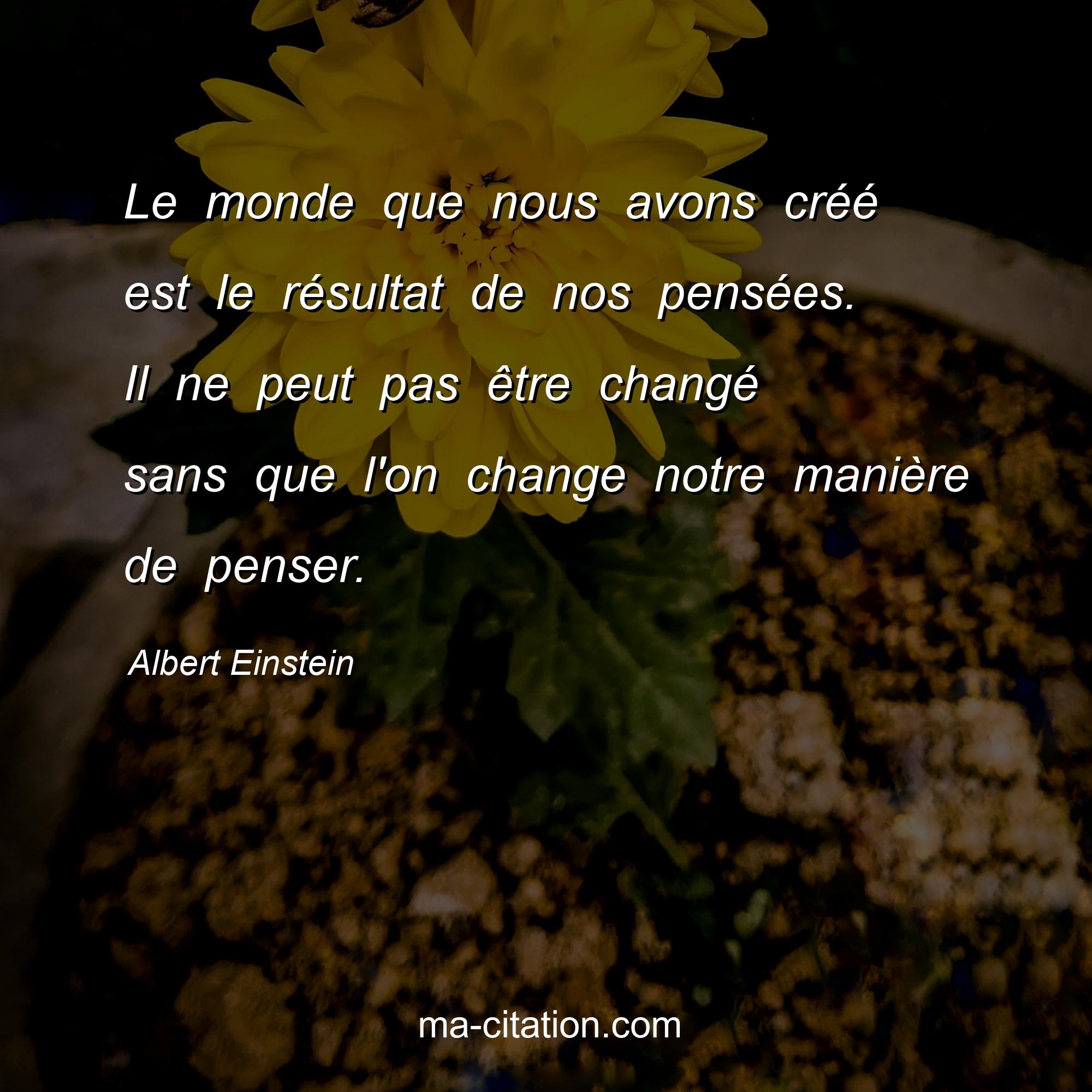 Le monde que nous avons créé est le résultat de nos pensées. Il ne peut pas être changé sans que l'on change notre manière de penser.