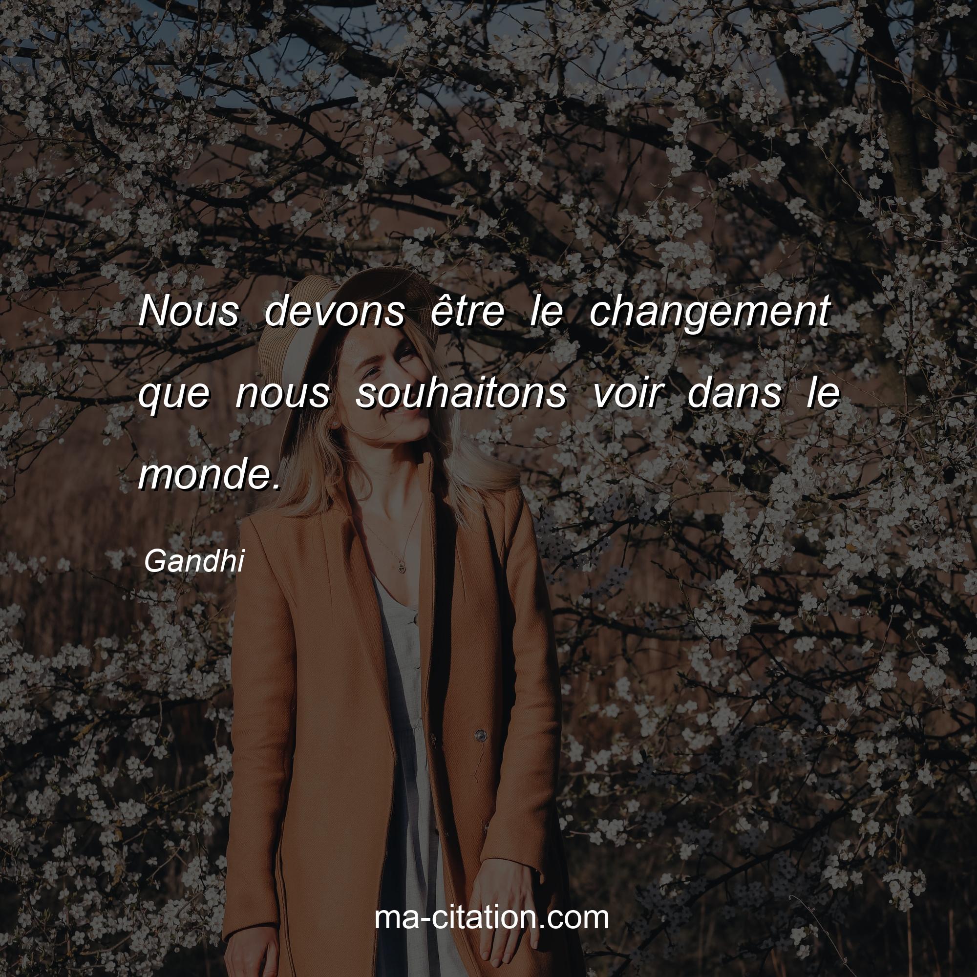 Citation sur la motivation de Gandhi :Nous devons être le changement que nous souhaitons voir dans le monde.