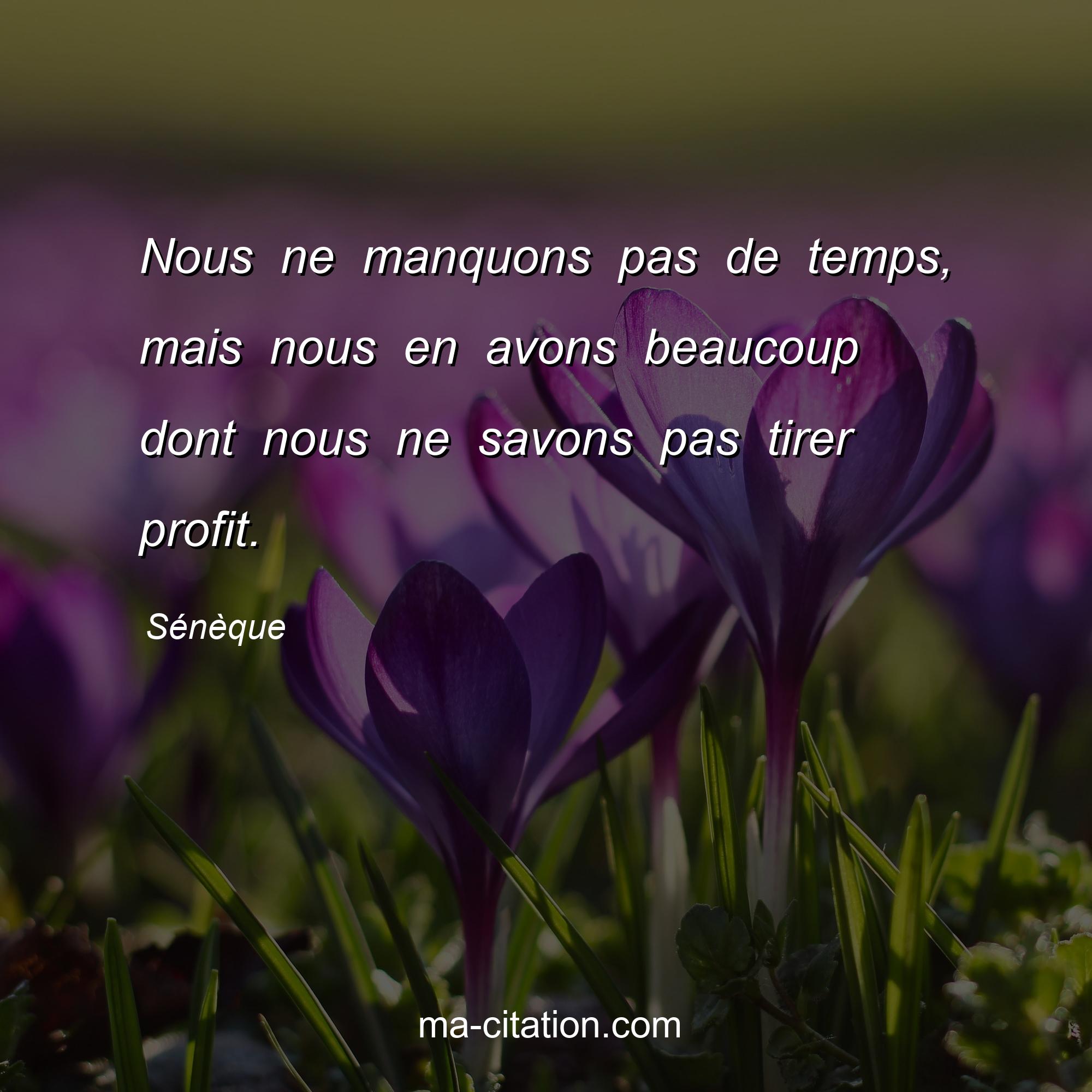Sénèque est l'auteur de la citation sur la motivation "Nous ne manquons pas de temps, mais nous en avons beaucoup dont nous ne savons pas tirer profit.".