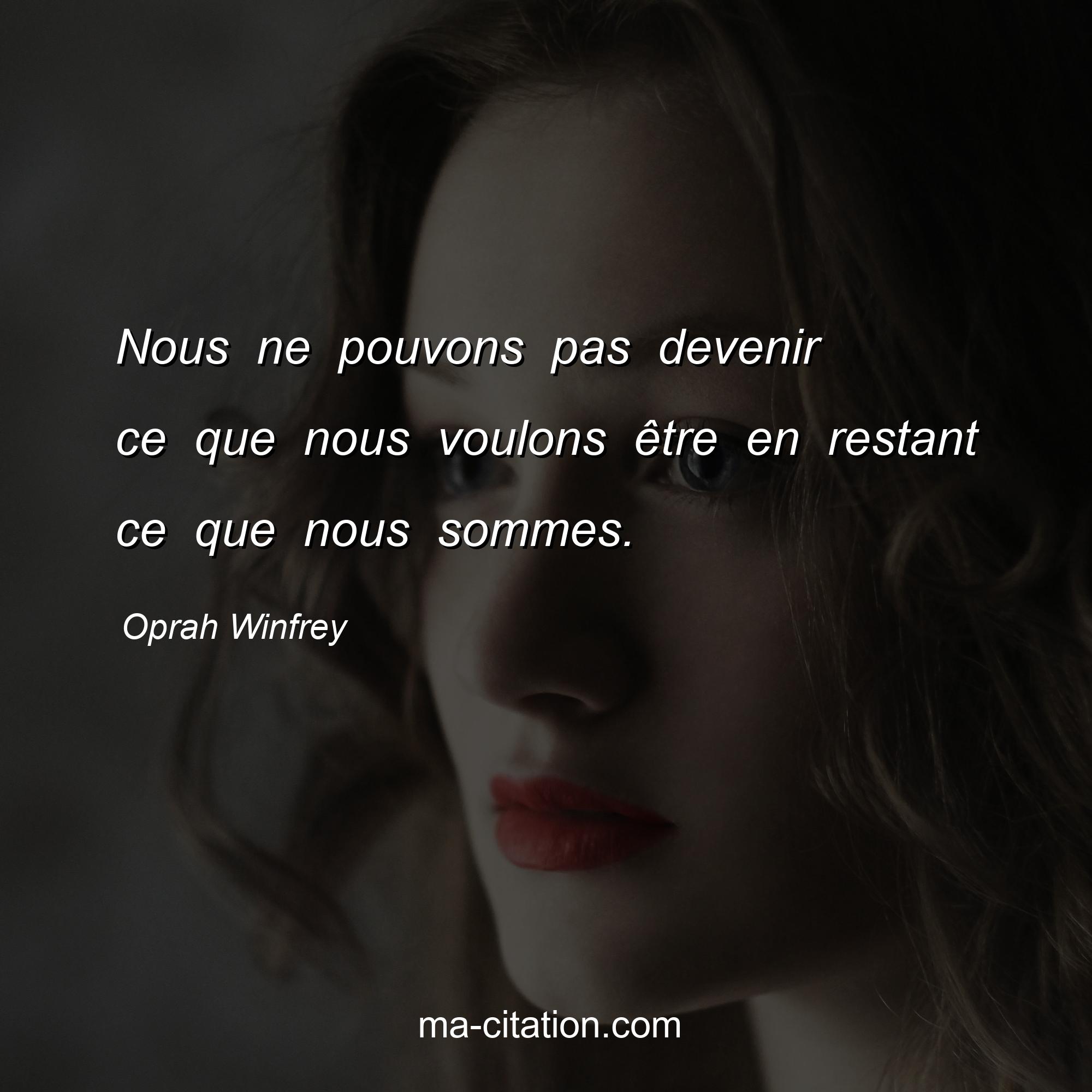 Citation sur la motivation d'Oprah Winfrey :Nous ne pouvons pas devenir ce que nous voulons être en restant ce que nous sommes.