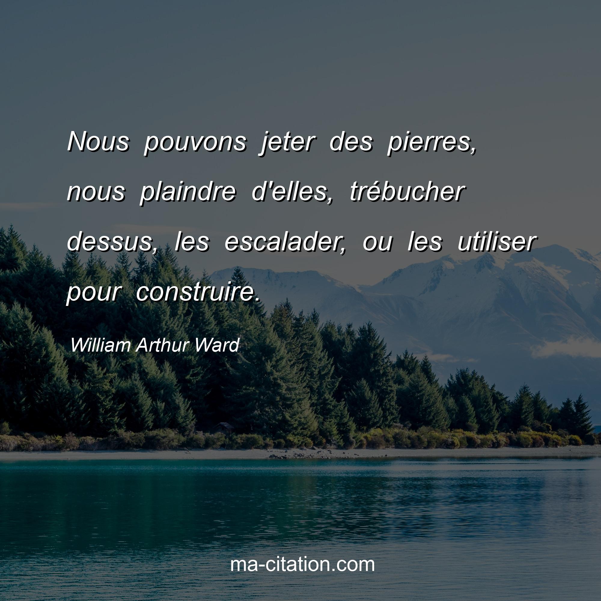 William Arthur Ward est l'auteur de la citation sur la motivation "Nous pouvons jeter des pierres, nous plaindre d'elles, trébucher dessus, les escalader, ou les utiliser pour construire.".
