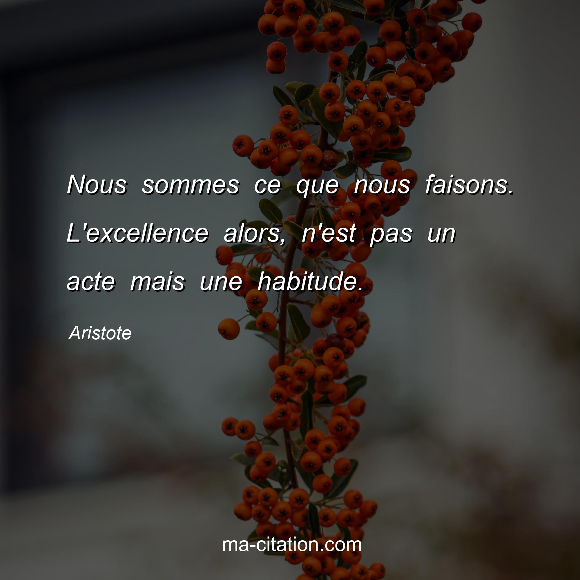 Aristote est l'auteur de la citation sur la motivation "Nous sommes ce que nous faisons. L'excellence alors, n'est pas un acte mais une habitude.".