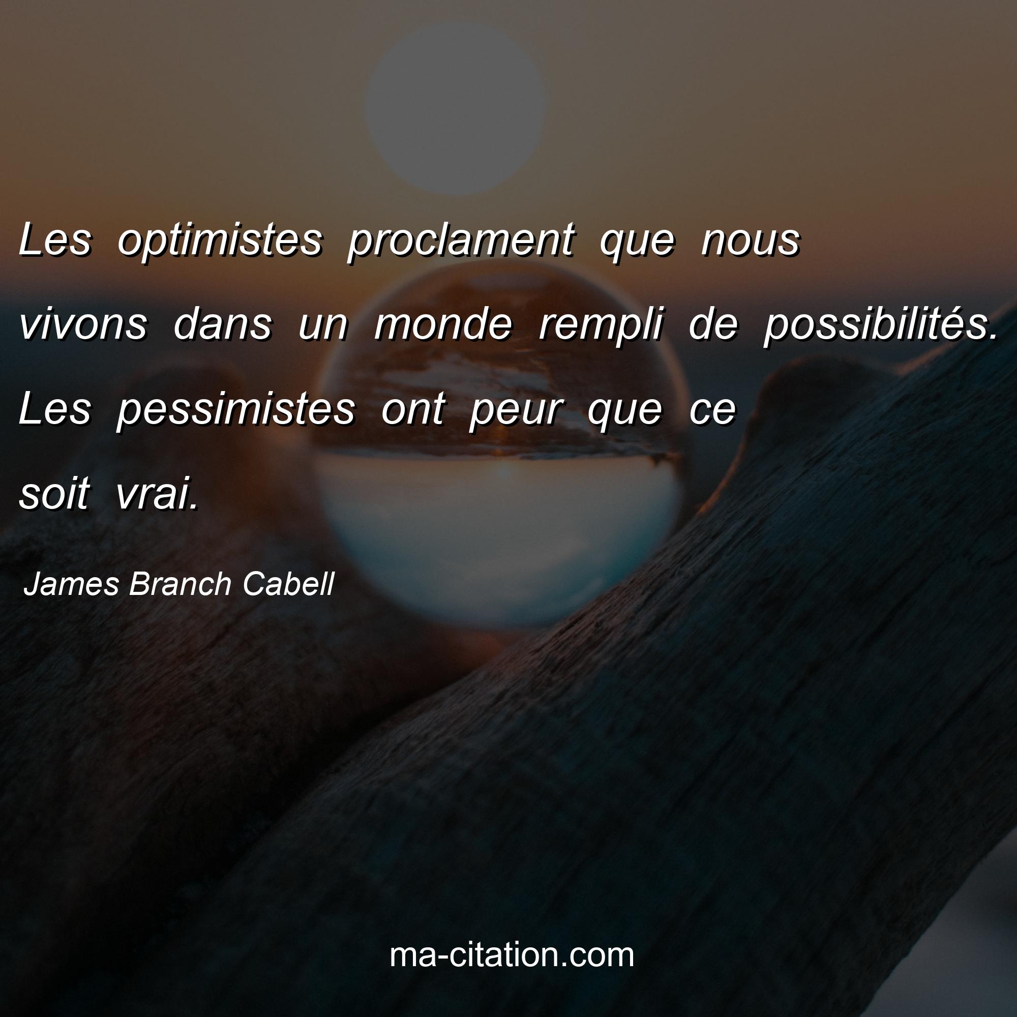 Citation sur la motivation de James Branch Cabell :Les optimistes proclament que nous vivons dans un monde rempli de possibilités… Les pessimistes ont peur que ce soit vrai !