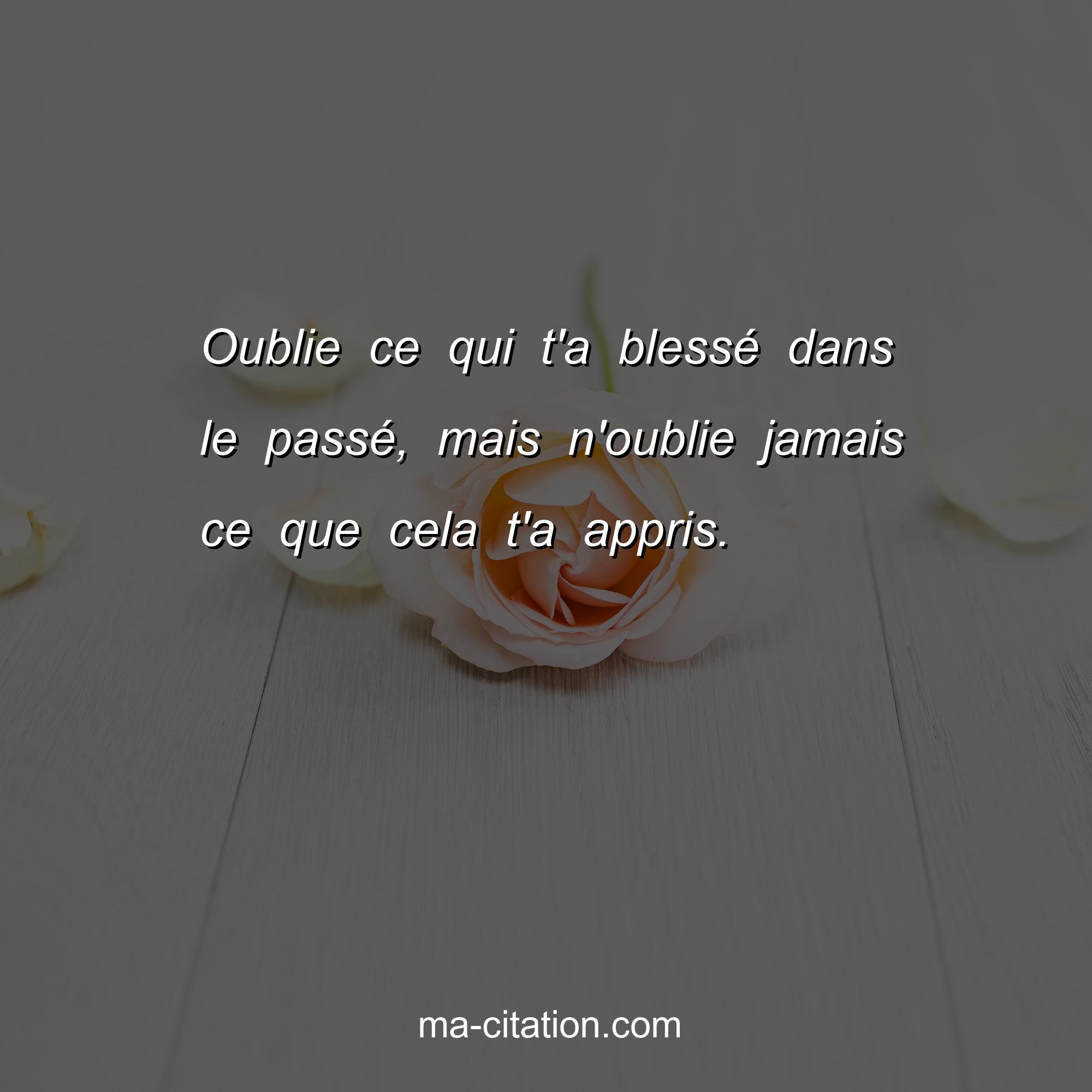Oublie ce qui t'a blessé dans le passé, mais n'oublie jamais ce que cela t'a appris.