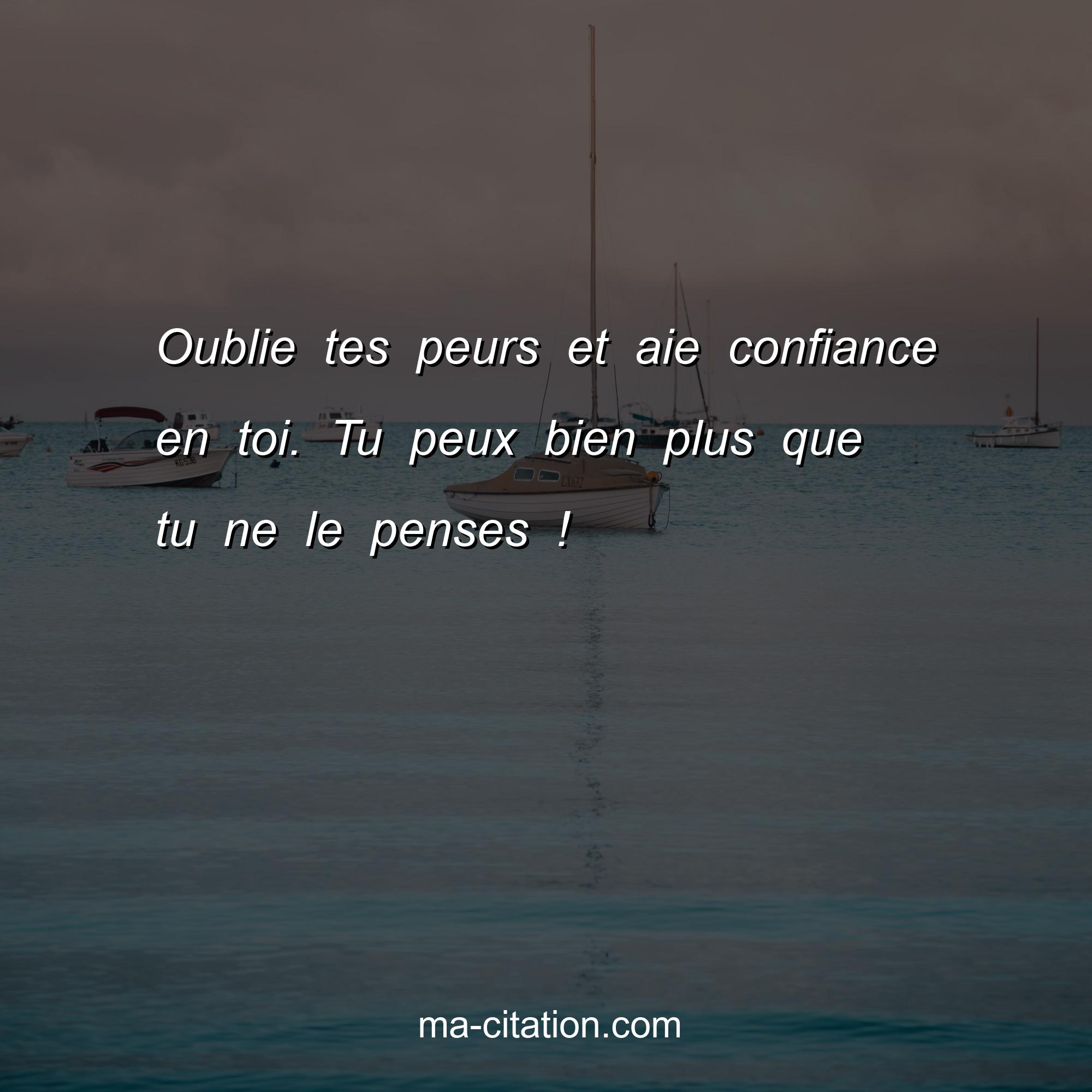 Citation sur la motivation :Oublie tes peurs et aie confiance en toi. Tu peux bien plus que tu ne le penses !