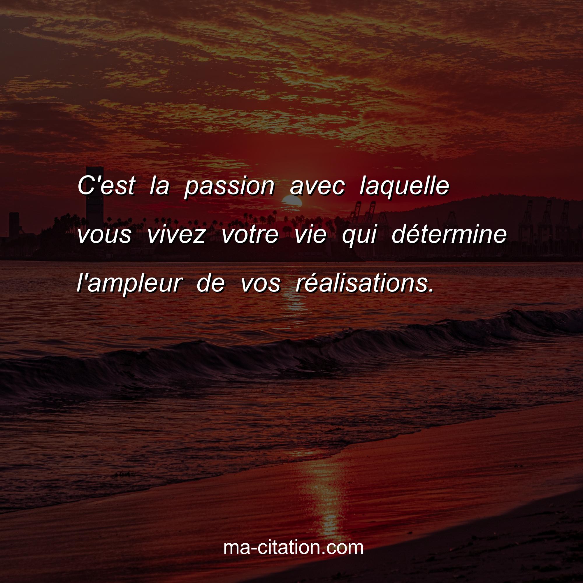 Citation sur la motivation :C'est la passion avec laquelle vous vivez votre vie qui détermine l'ampleur de vos réalisations.