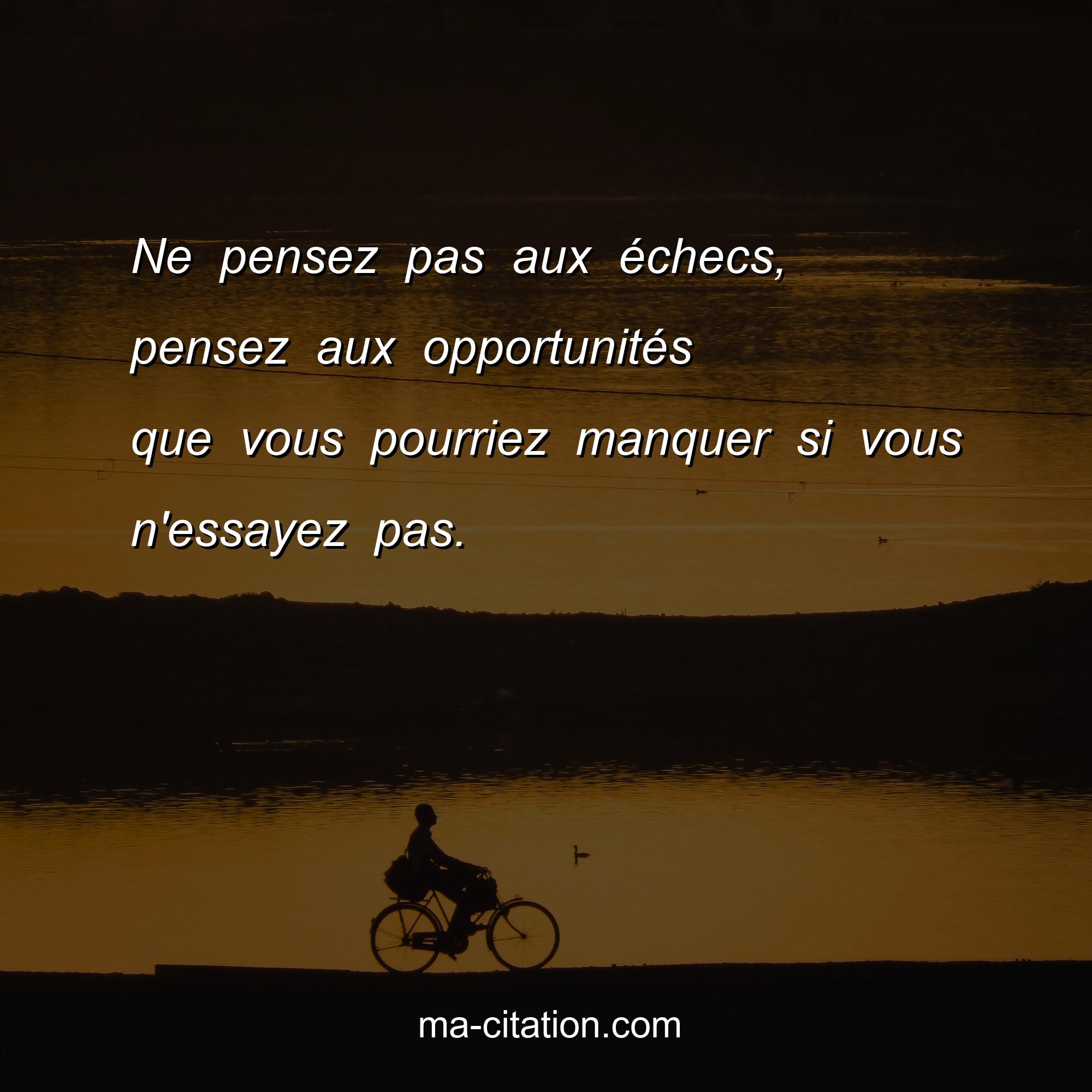 Citation sur la motivation :Ne pensez pas aux échecs, pensez aux opportunités que vous pourriez manquer si vous n'essayez pas.