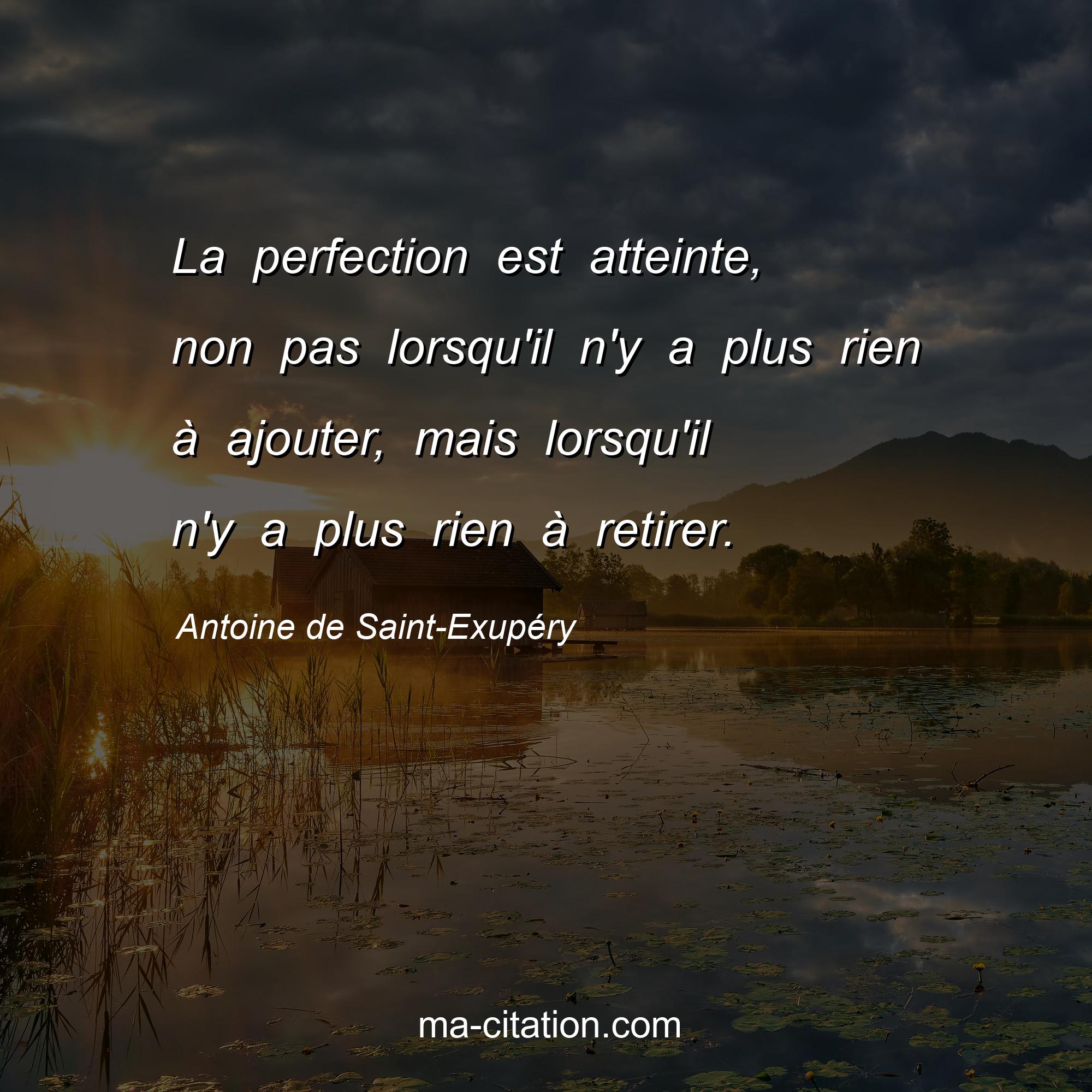 Citation sur la motivation d'Antoine de Saint-Exupéry :La perfection est atteinte, non pas lorsqu'il n'y a plus rien à ajouter, mais lorsqu'il n'y a plus rien à retirer.