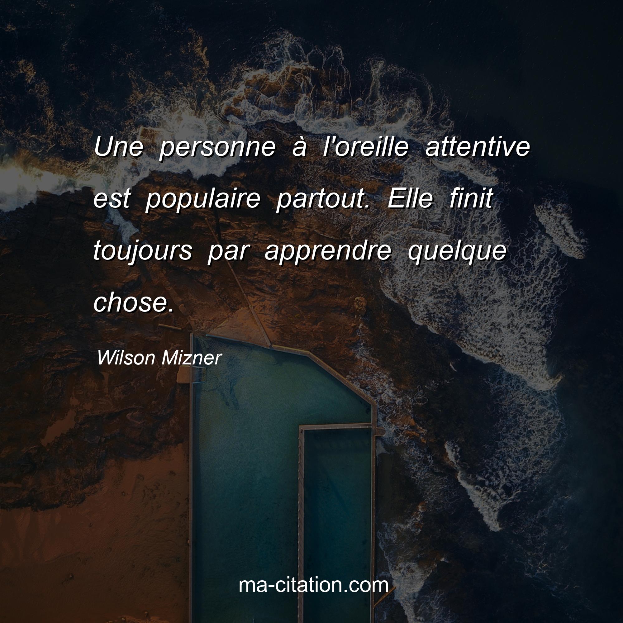 Citation sur la motivation de Wilson Mizner :Une personne à l'oreille attentive est populaire partout. Elle finit toujours par apprendre quelque chose.