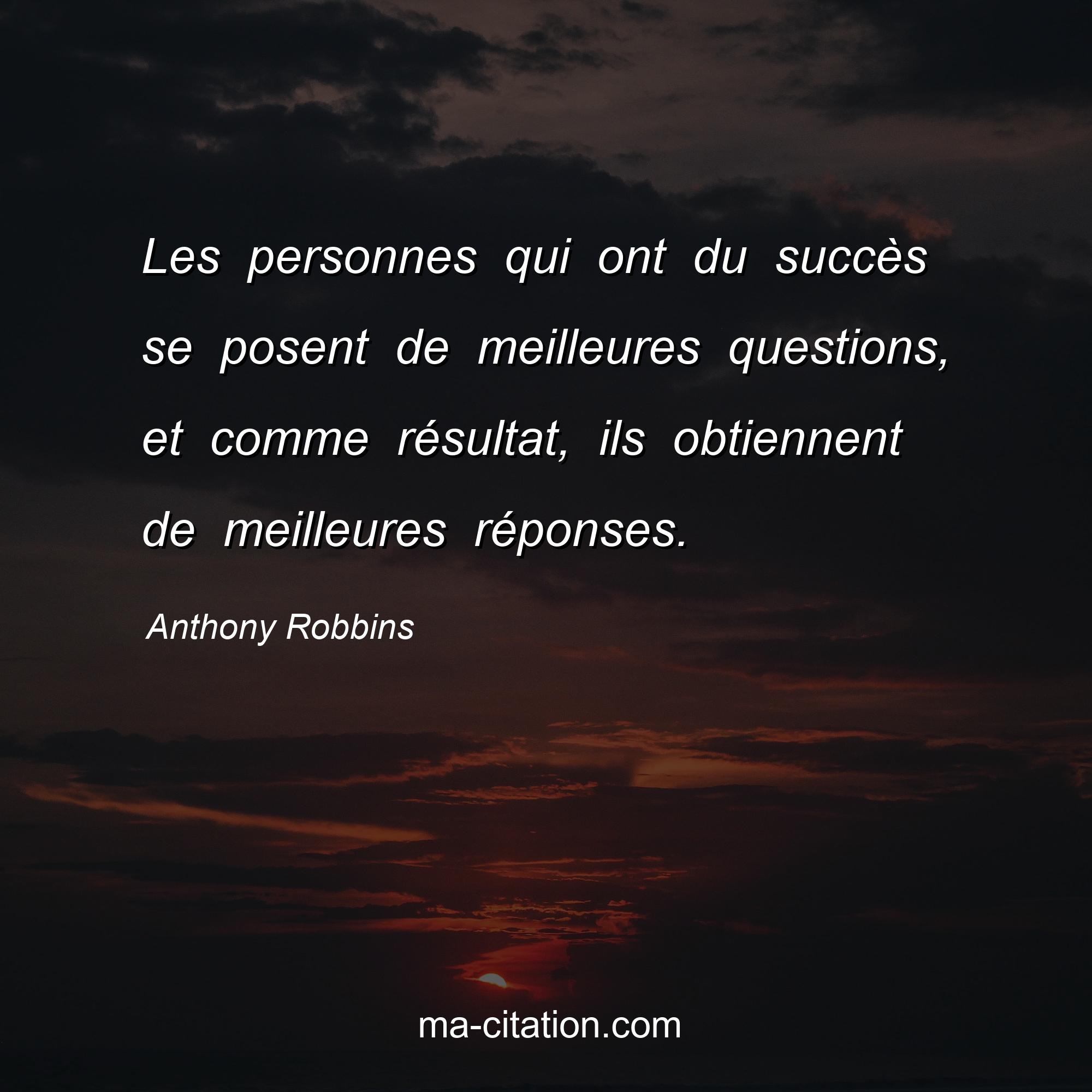 Citation sur la motivation d'Anthony Robbins :Les personnes qui ont du succès se posent de meilleures questions, et comme résultat, ils obtiennent de meilleures réponses.