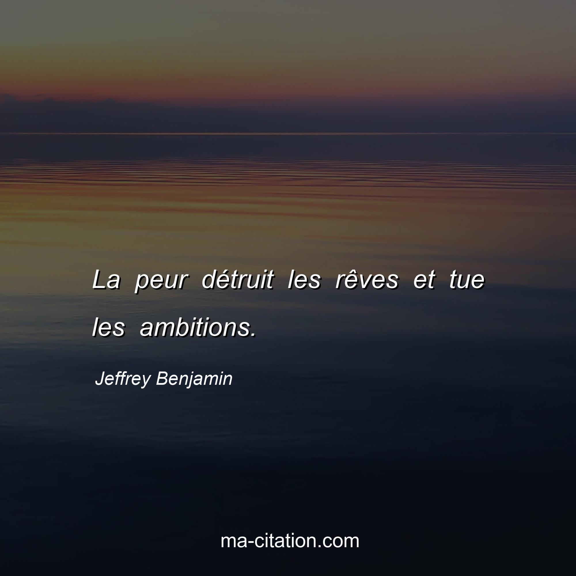 Jeffrey Benjamin est l'auteur de la citation sur la motivation "La peur détruit les rêves et tue les ambitions.".
