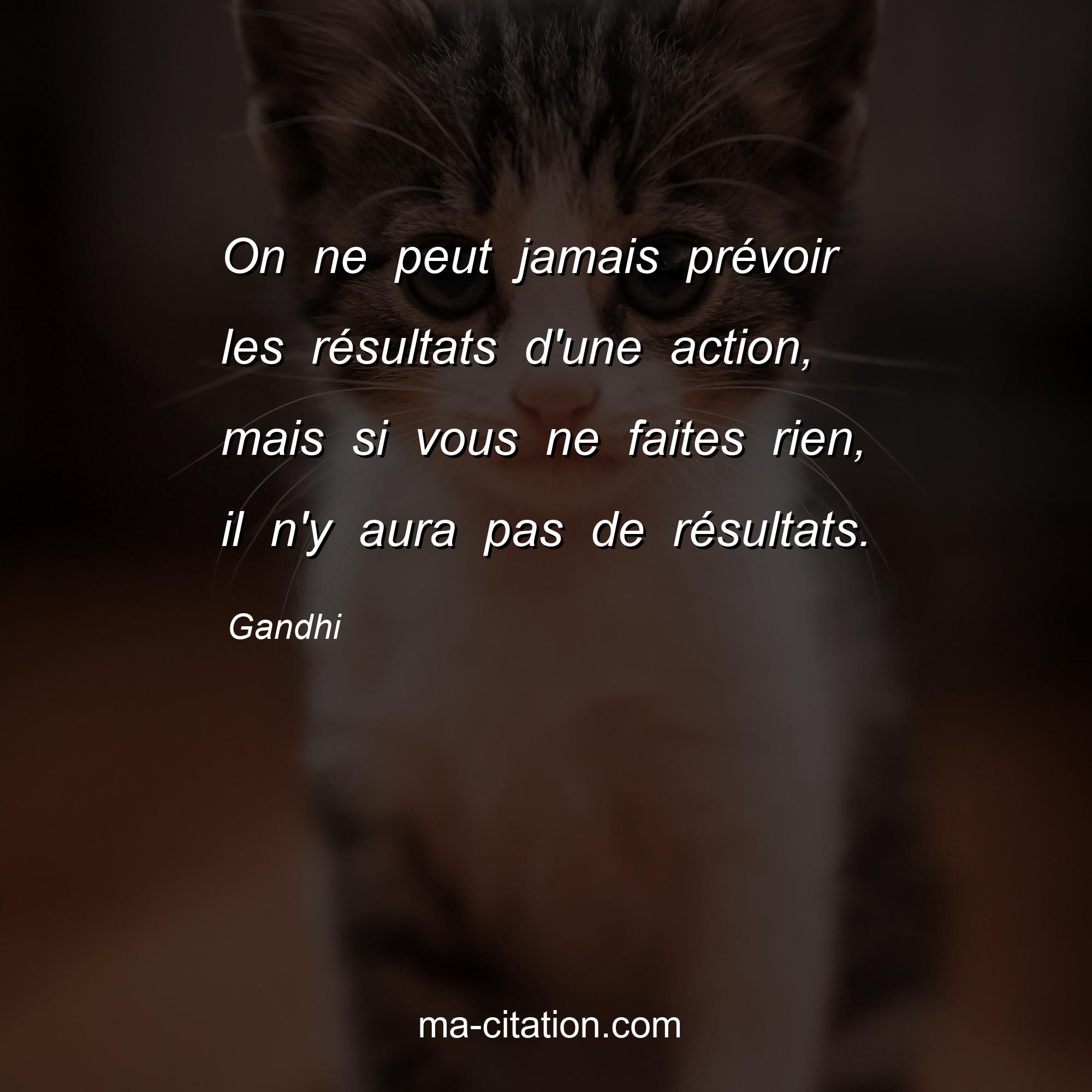 Citation sur la motivation de Gandhi :On ne peut jamais prévoir les résultats d'une action, mais si vous ne faites rien, il n'y aura pas de résultats.